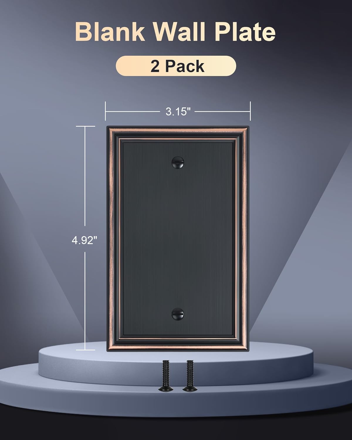 2-Pack Single Blank Wall Plates, Durable Solid Zinc Alloy Blank Outlet Covers, Decorative Aged Bronze Wall Plate Cover for Unused Outlets/Switches, Corrosion Resistant