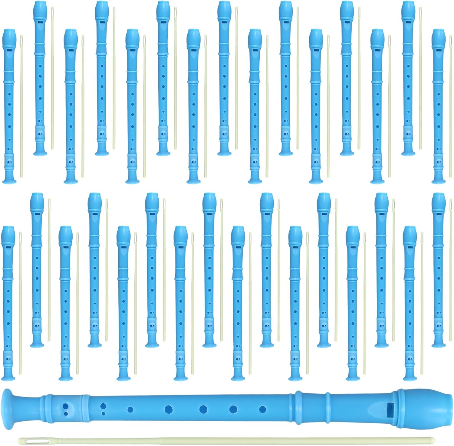 30 Pack 8 Hole Soprano Recorder Descent Flute, German Musical Recorders Instruments with Cleaning Rod, Blue Flutes for Beginners, Student Practice, School Concert