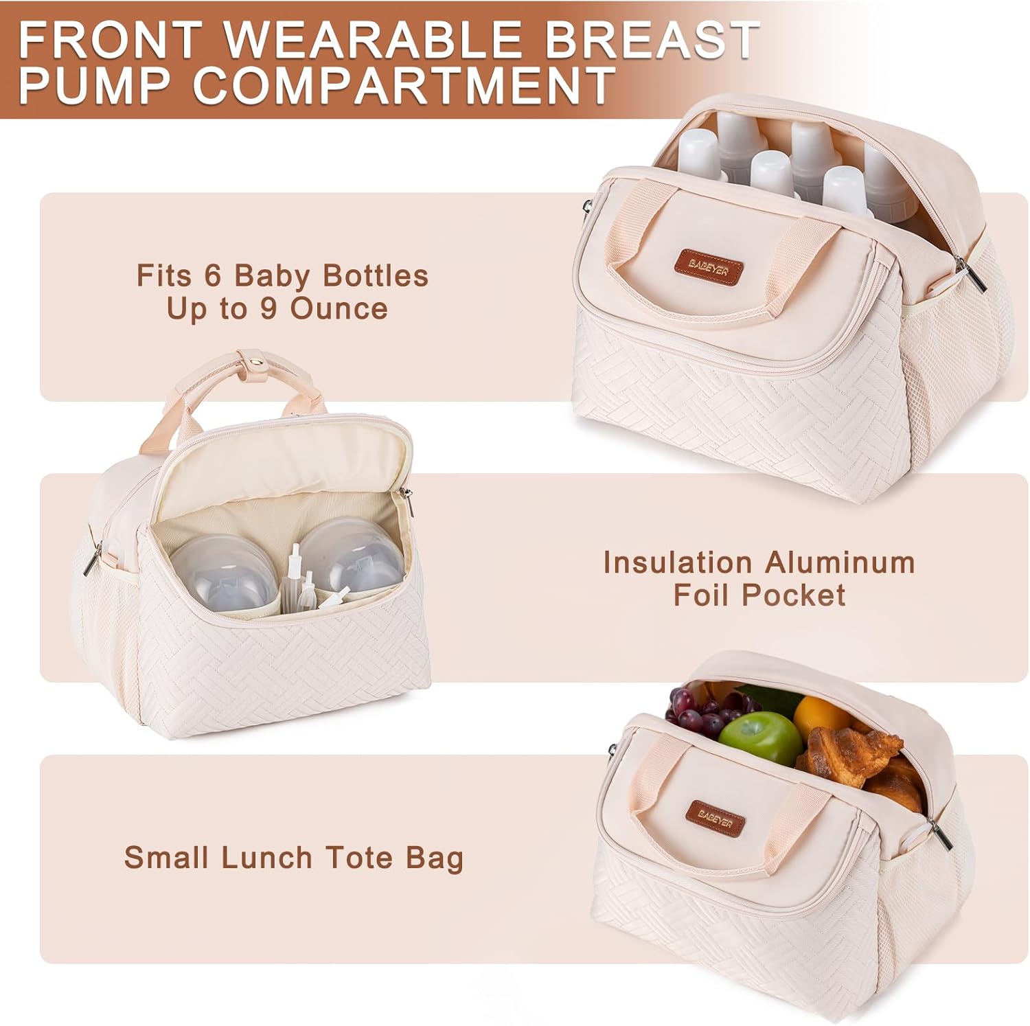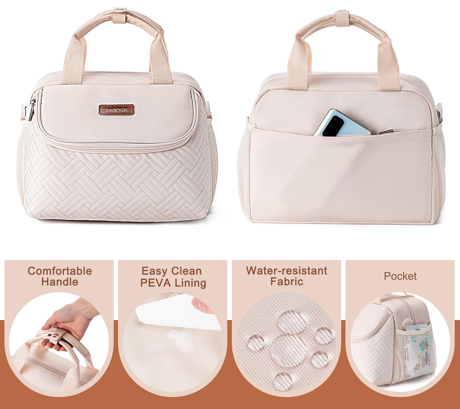 - Easy to Carry: BABEYER breastmilk cooler bag come with an adjustable shoulder strap which can be cross-body over the shoulder. Comfortable leather handle for easy put on the stroller. Come with a PEVA waterproof mat, it can be used to place baby bottles, breast pumps & accessories
