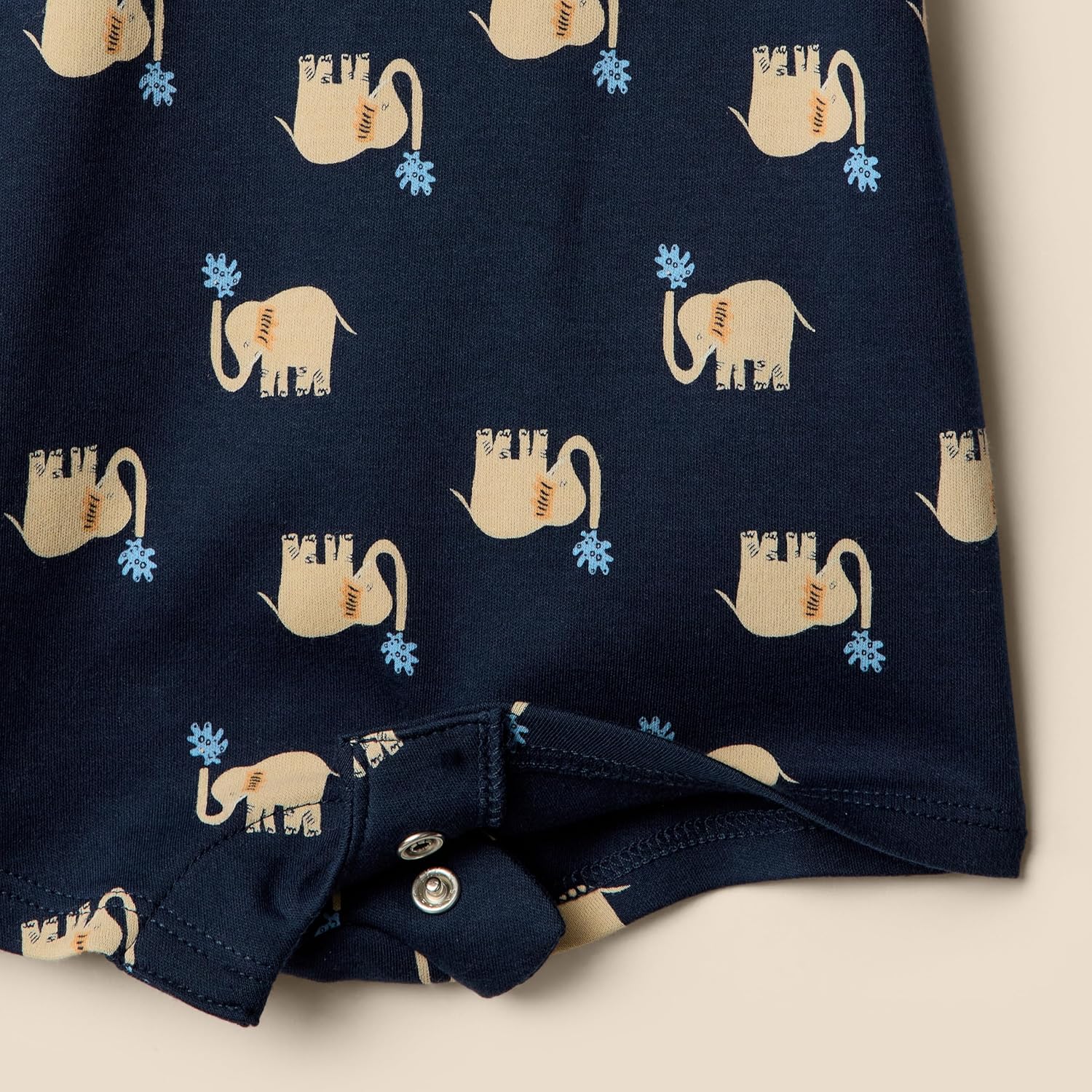 • DETAILS: Features a polo collar with a snap front placket and gusseted snap closure at leg opening