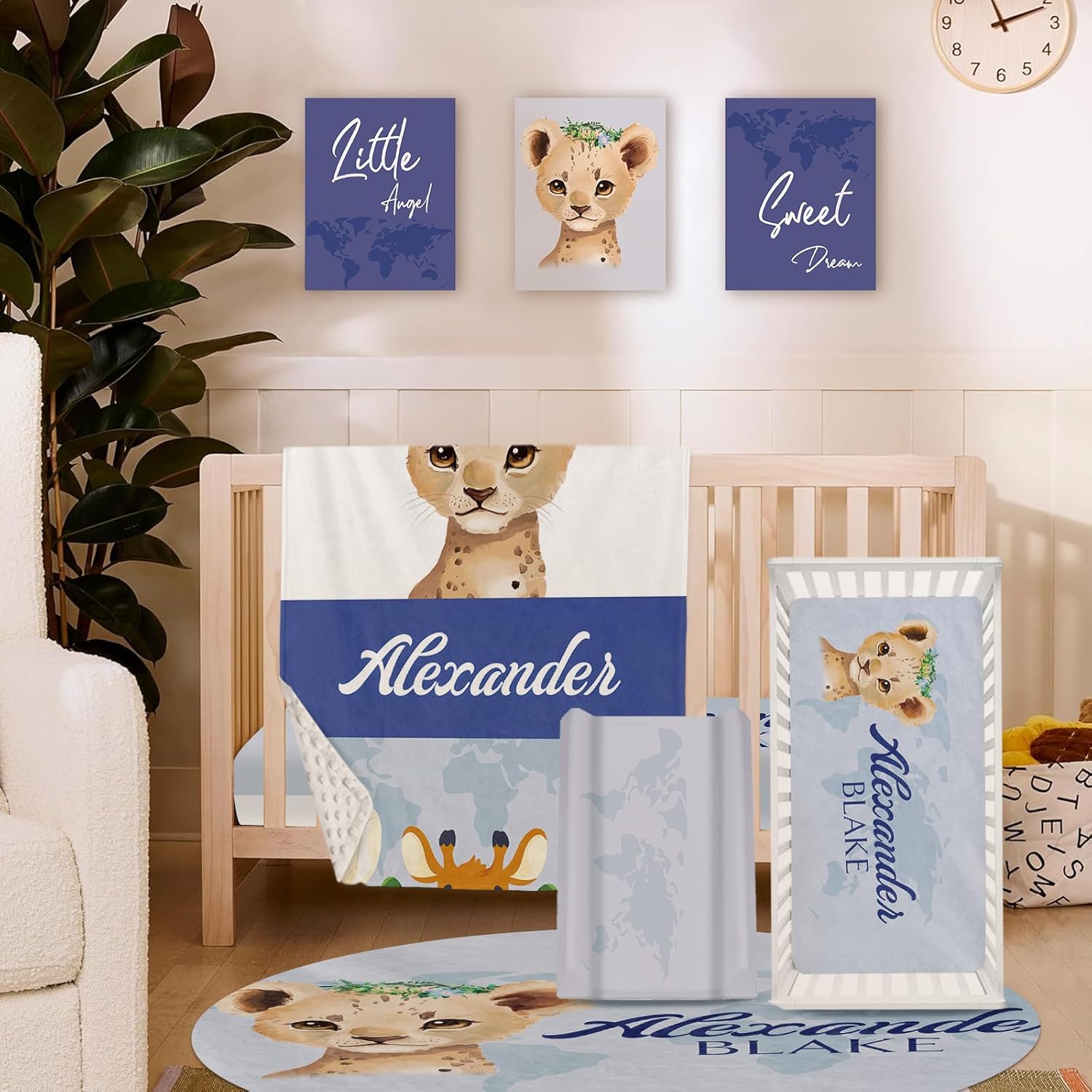 - Included Components : Changing Pad Cover, Double Layer Blanket, Fitted Sheet, Round Rug, Wall Art