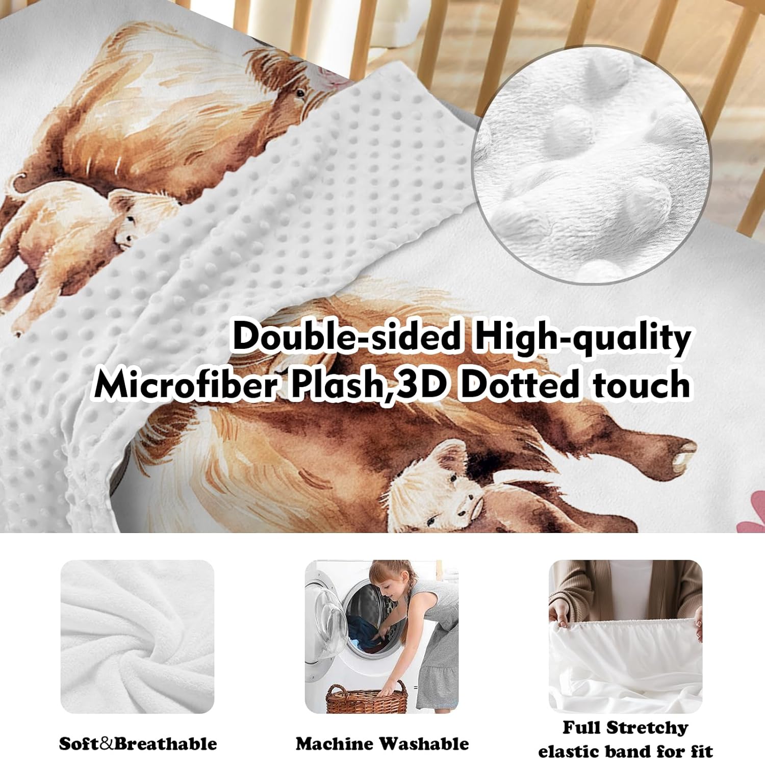 - Easy Care and Convenience: Our crib sheet, double layer blanket, and changing pad cover are all machine washable, ensuring easy cleaning and maintenance, suitable for busy new parents.