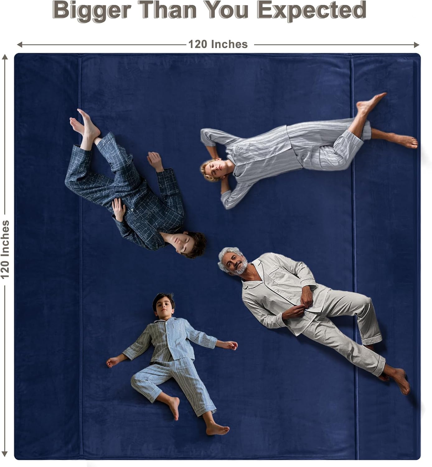 - Extra Large Size Blanket: Measured by 120"x 120", It's Bigger than you can imagine, Nearly double the size of a standard king-size blanket, which means it can surround you and your families with just one blanket.