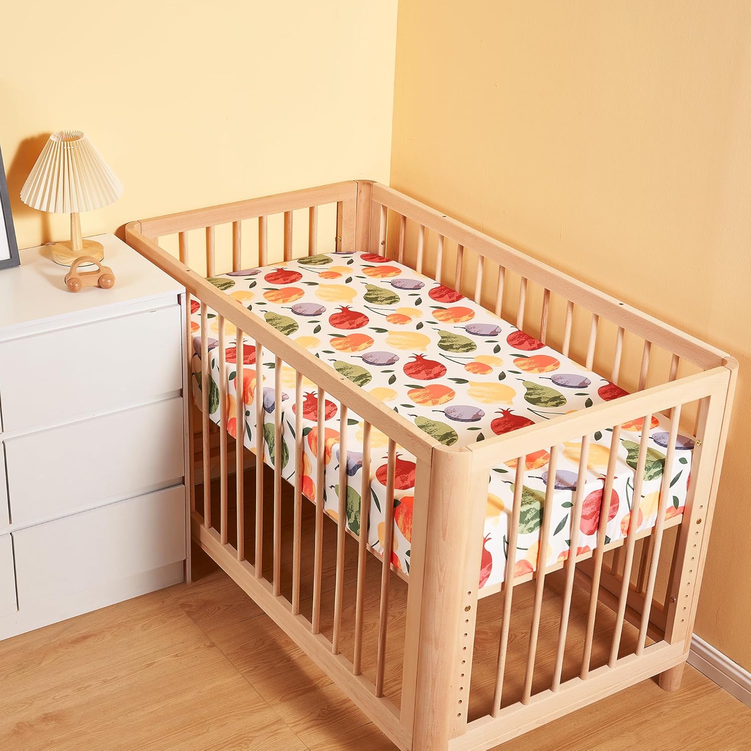 TILLYOU Baby Crib Sheets for Boys Girls, Super Soft Toddler Bed Sheets, 2 Pack Sheets for Standard Crib Mattress 28x52in, Fruit Shadow
