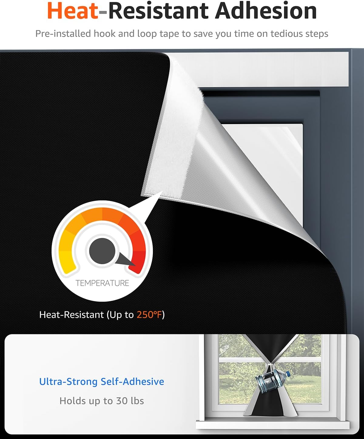 - â¨ăUpgrade Heat-Resistance Magic TapesăSumobaby 33"x36" blackout curtain for bedroom features premium pre-attached tapes for easy,drill-free installation.Two extra tape strips included,each splitable into 5 squares.Made of acrylic, these tapes leave no residue,providing strong adhesion and heat resistanceďź200°F to 250°F).Bid farewell to concerns about your black out curtains slipping in hot weather.