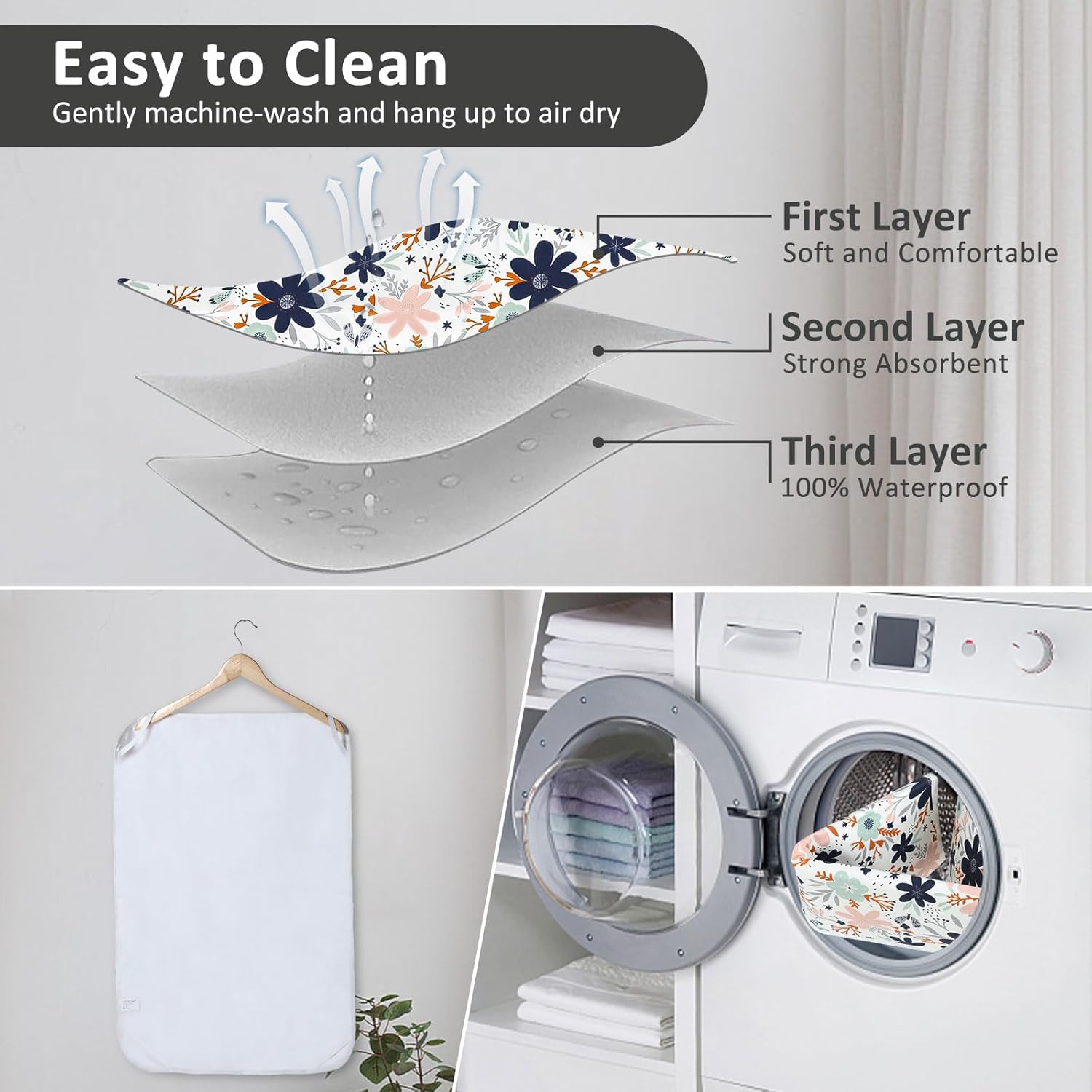 Baby Diaper Changing Pad, 21 5/8" x 31.5" Waterproof Changing Pad Liners - Reusable Soft and Absorbent Portable Changing Mat(Floral1PCS)