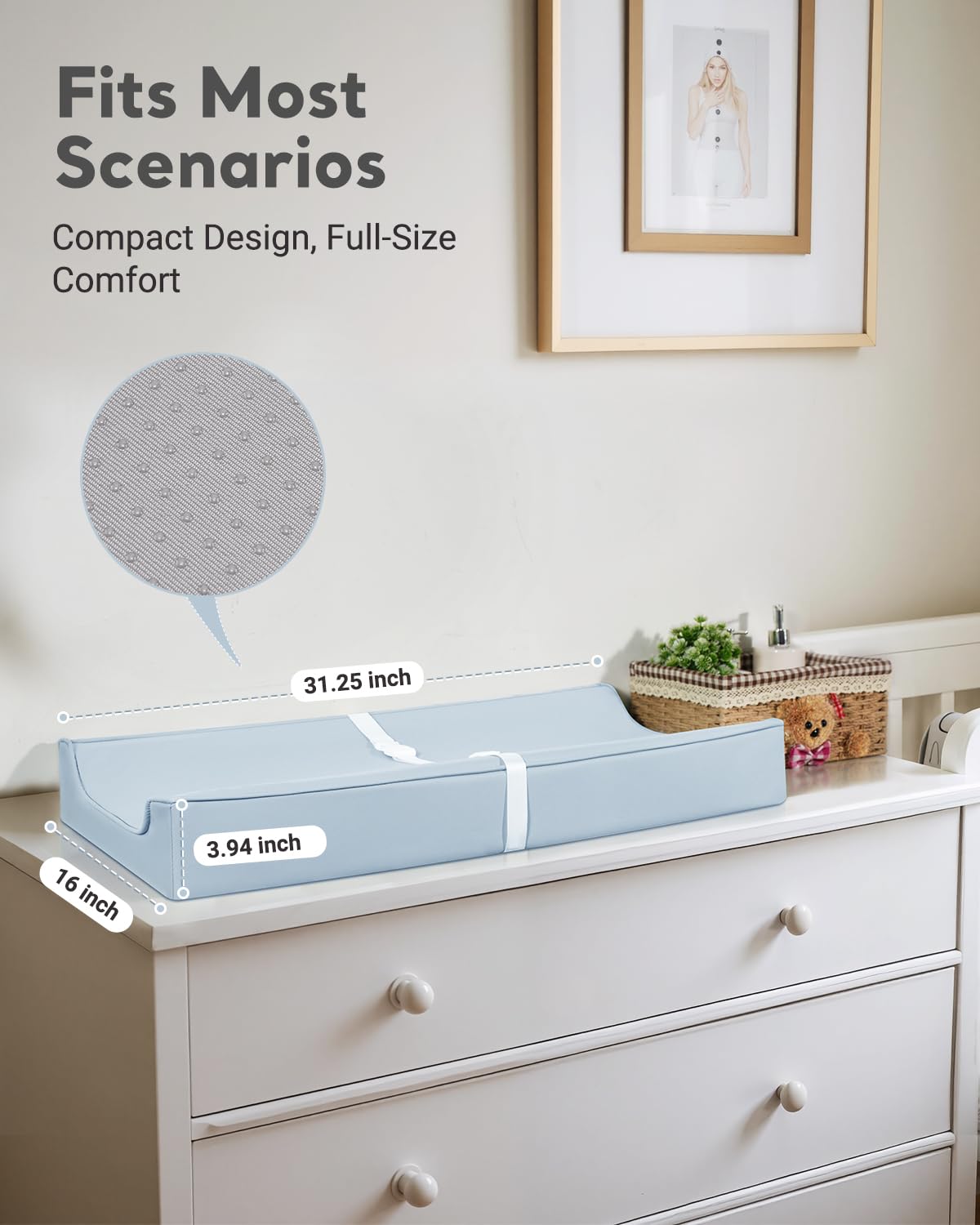 - Ultra-Thick & Non-Slip Safety: 4-inch extra-thick foam provides cushioning comfort, while the non-slip back keeps the pad securely in place on any surface—ideal for dressers, cribs, or travel