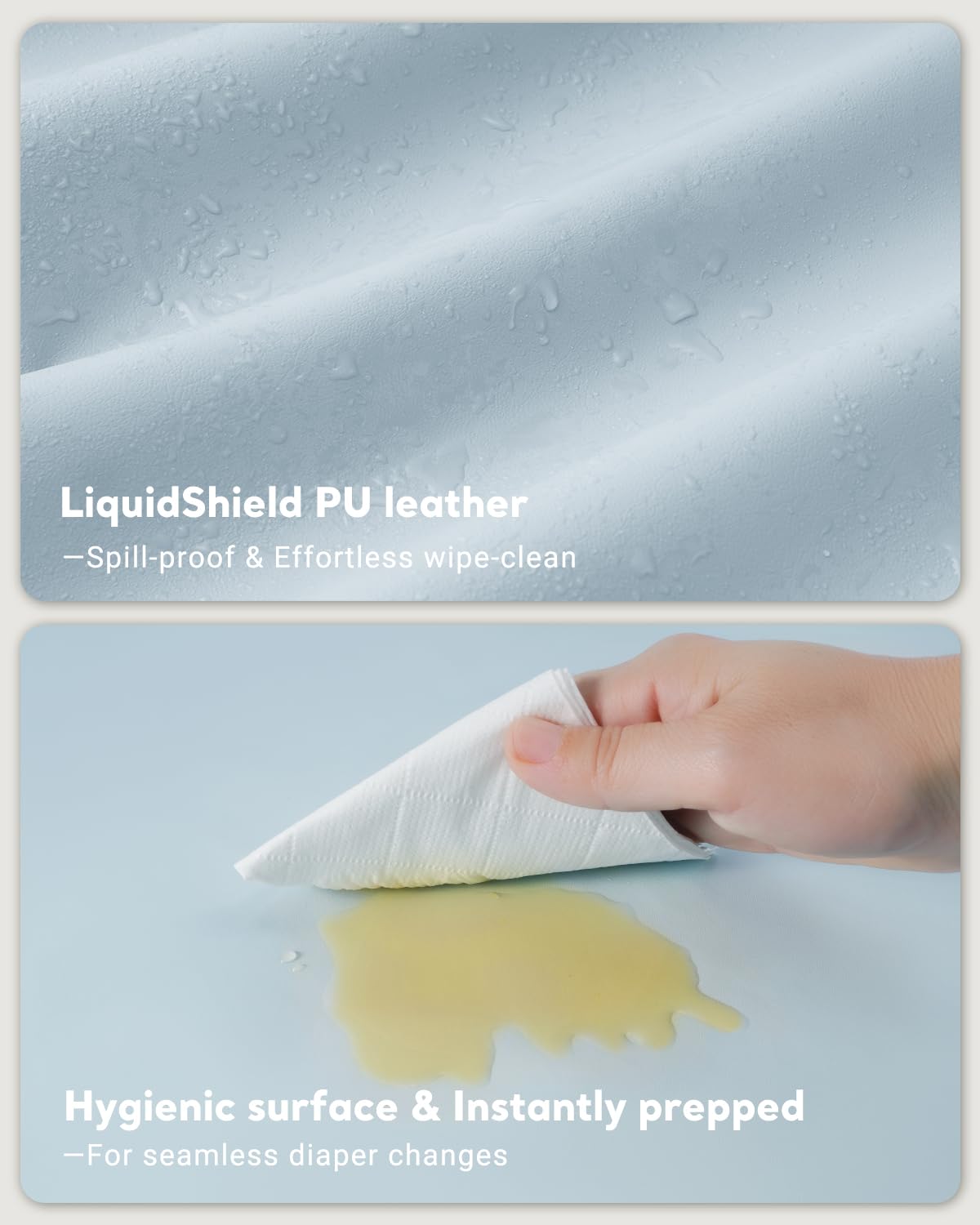 - Premium Waterproof & Wipeable Design: Crafted with eco-friendly, non-toxic TPU material, this baby changing pad repels liquids and wipes clean in seconds—no stains or odors. Perfect for messy diaper changes