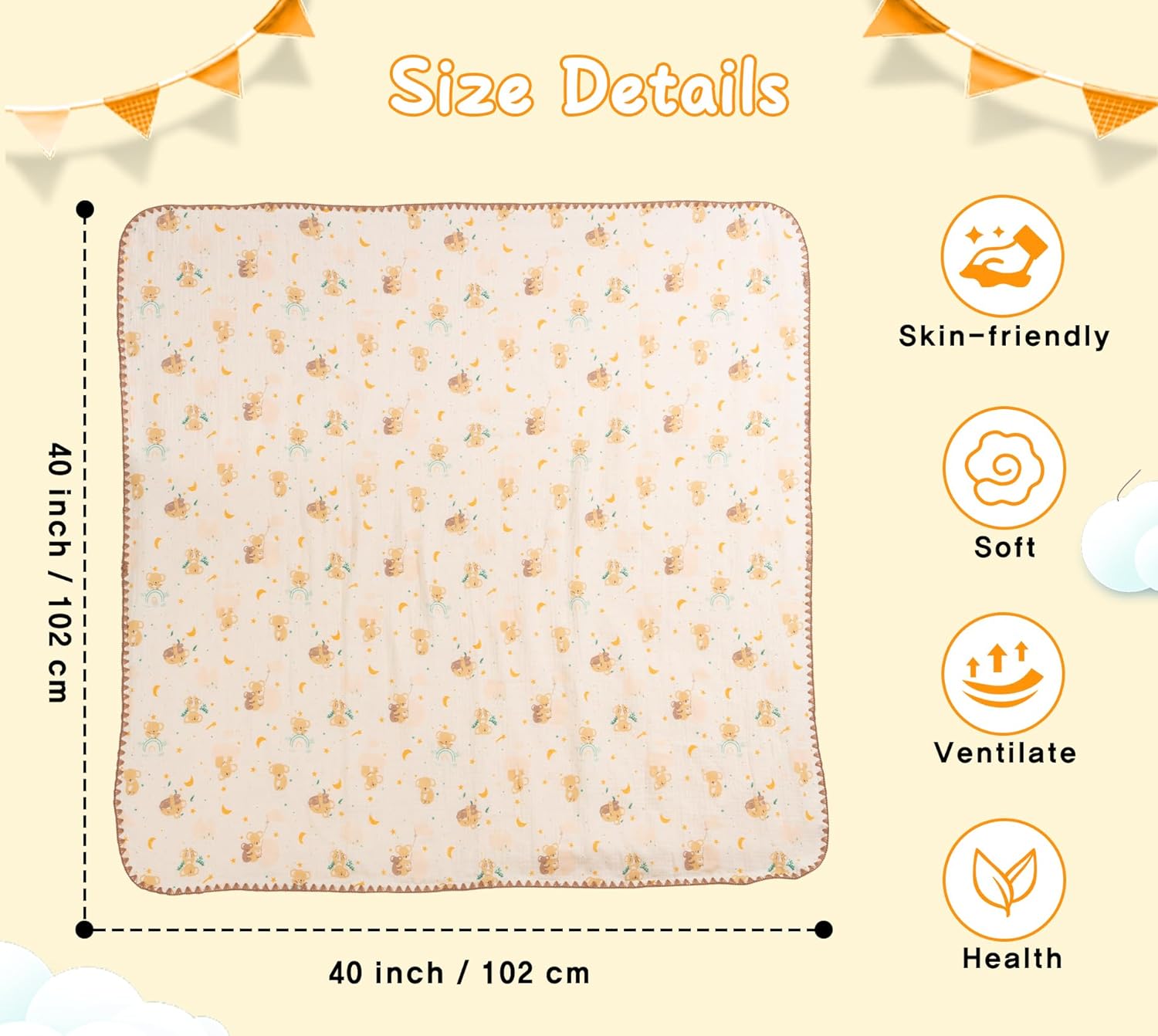 Baby Blanket Double Layer Cotton 40 x 40 Soft Receiving Blanket with Pattern Machine Washable Koala