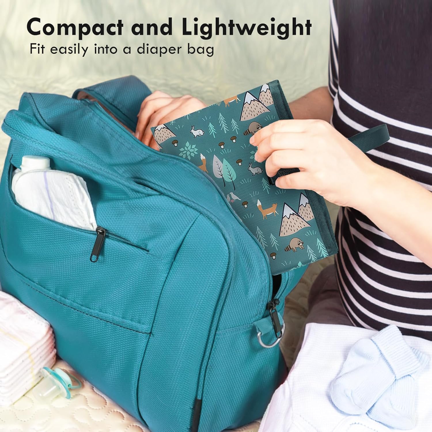 - Foldable Compactly: Make diaper changes a breeze with our baby changing pad. Simply fold it into a 7" by 8.5" clutch for convenient storage. Our portable changing mat fits effortlessly into any diaper bag. The foldable design and lightweight construction make it ideal for on-the-go parents.