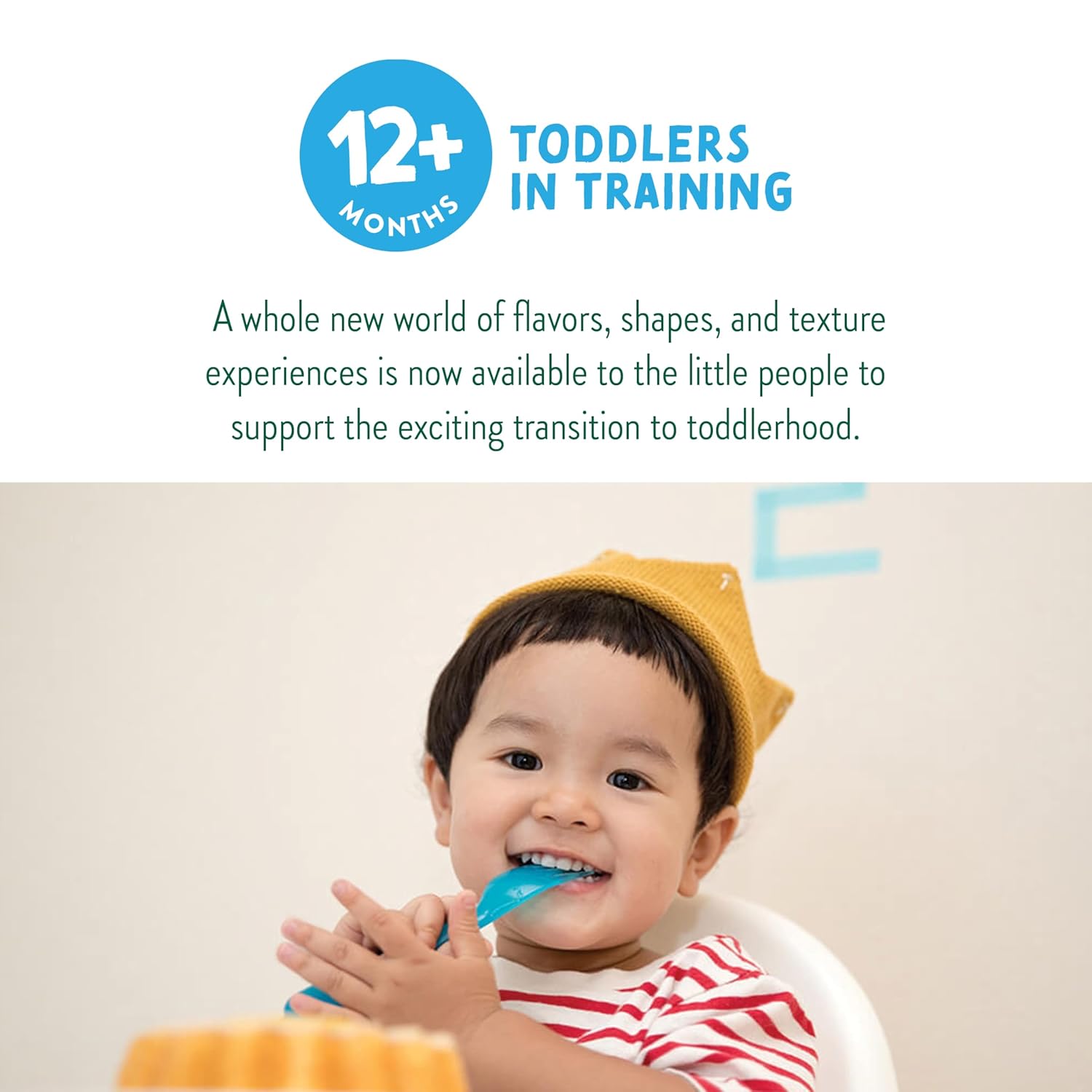 - Age and stage appropriate — We carefully consider nutritional requirements, flavors, shapes and textures for every age and stage to support independent self-feeding and aid motor skill progression.
