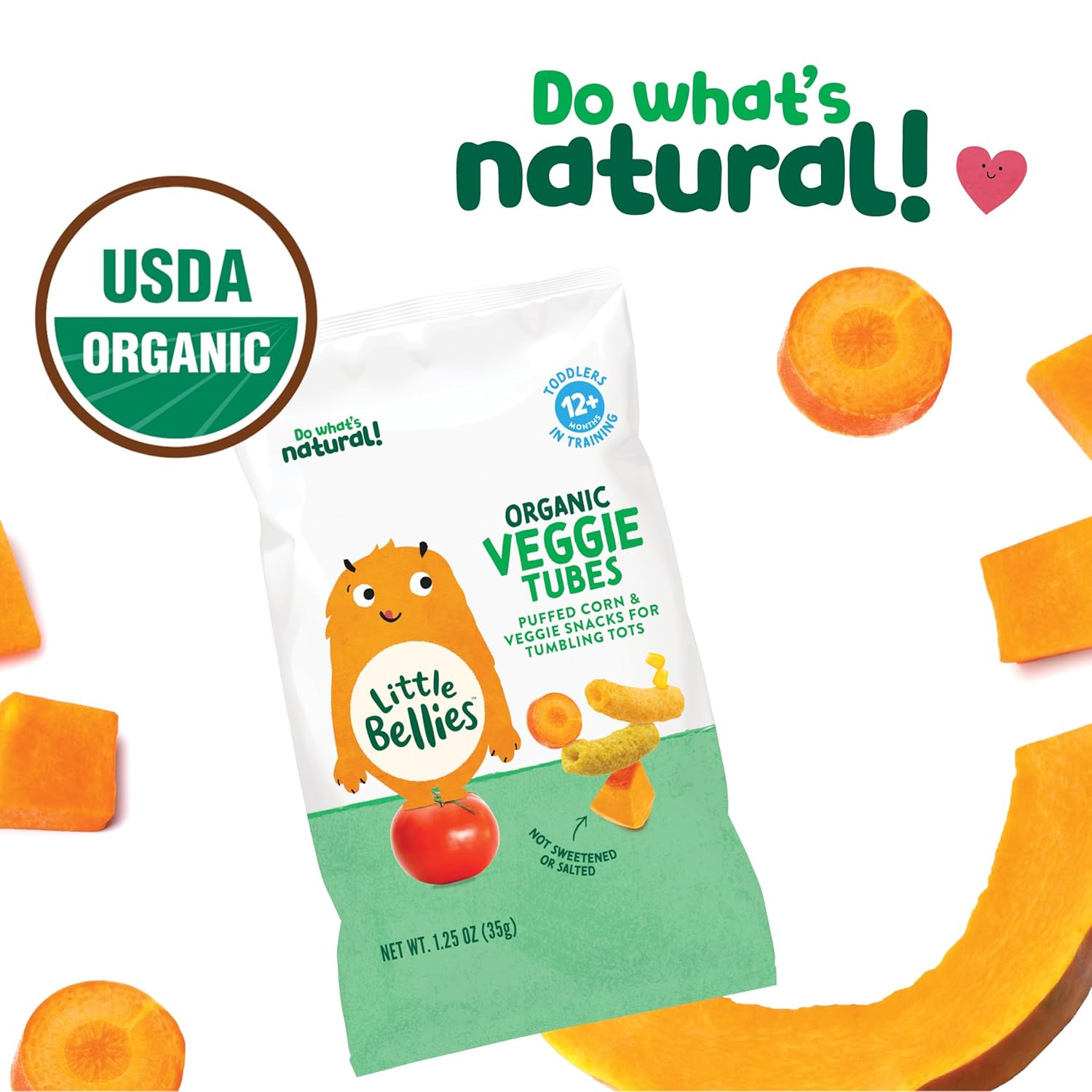 Little Bellies Organic Veggie Tubes Toddler Snack (Pack of 4 x 1.25 oz Individual Packs)