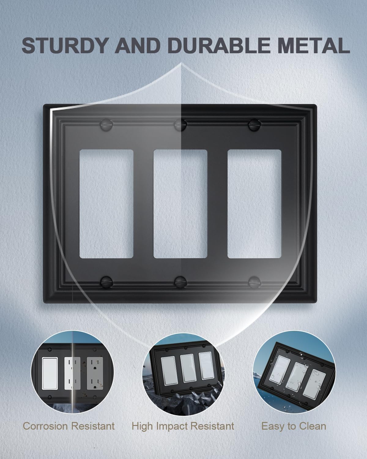 - 【Modern Design】Featuring stylish and charming black finish, ZILLSEA 3-gang decorator wall plate coordinates with your home decor and adds texture and elegance to your space
