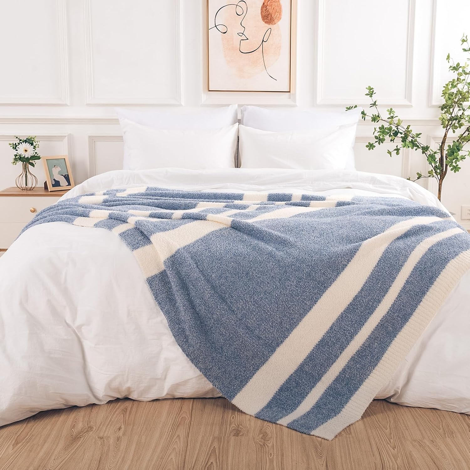 NEXHOME PRO Stripe Cozy Blanket Twin, Knit Fuzzy Throw Blanket for Couch Bed Sofa Picnic, Ultra Soft Blankets for Women Gifts Blue50 x 60 inches