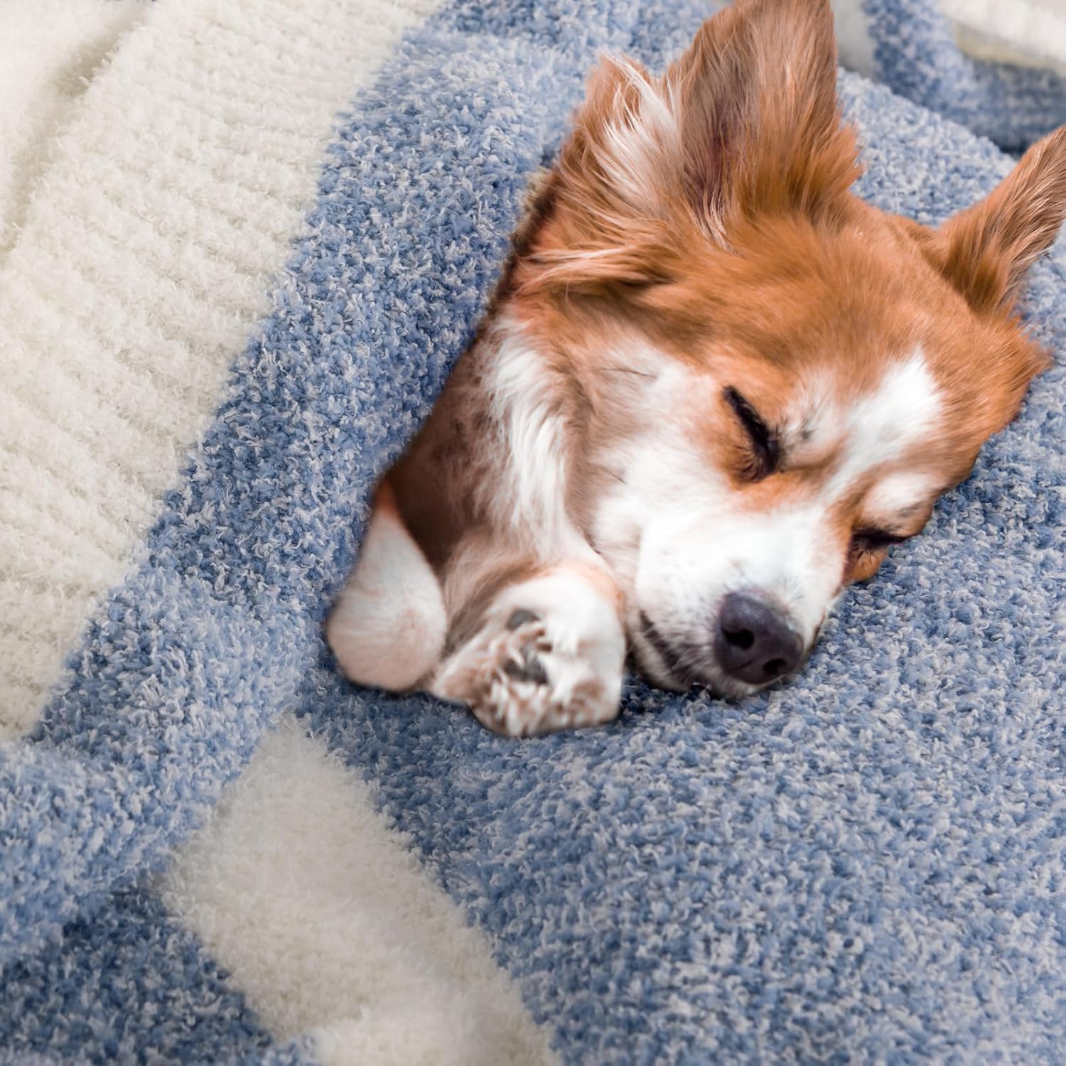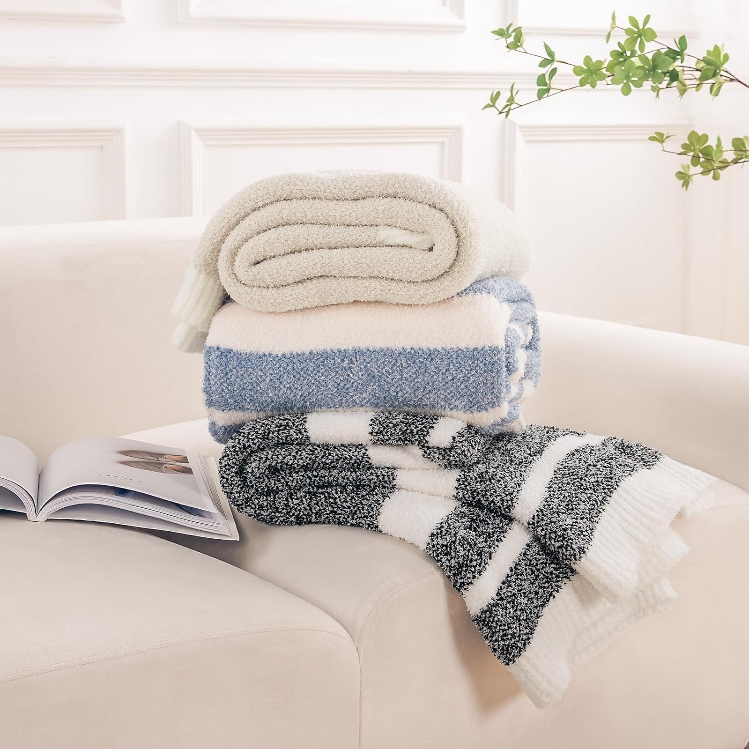 NEXHOME PRO Stripe Cozy Blanket, Knit Fuzzy Throw Blanket for Couch Bed Sofa Picnic, Ultra Soft Blankets for Women Gifts Blue 50 x 60 inches