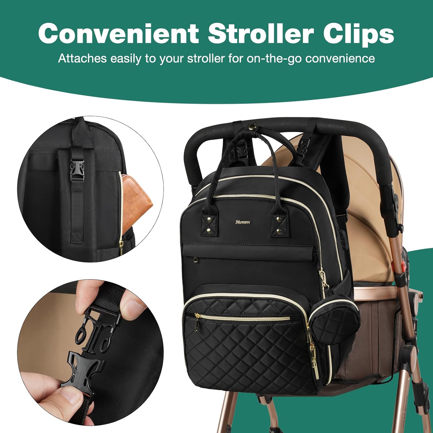 - Convenient and Thoughtful: Baby diaper bag features 15.6’’ padded laptop pocket and 12.9’’ iPad pocket in the main compartment, USB charging port, 2 built-in stroller straps, waterproof pocket, back anti theft pocket, dual zippers for easy access and closure even with one hand! Also we have added a luggage sleeve on the back so it can easily slide over a carryon luggage while on the go.