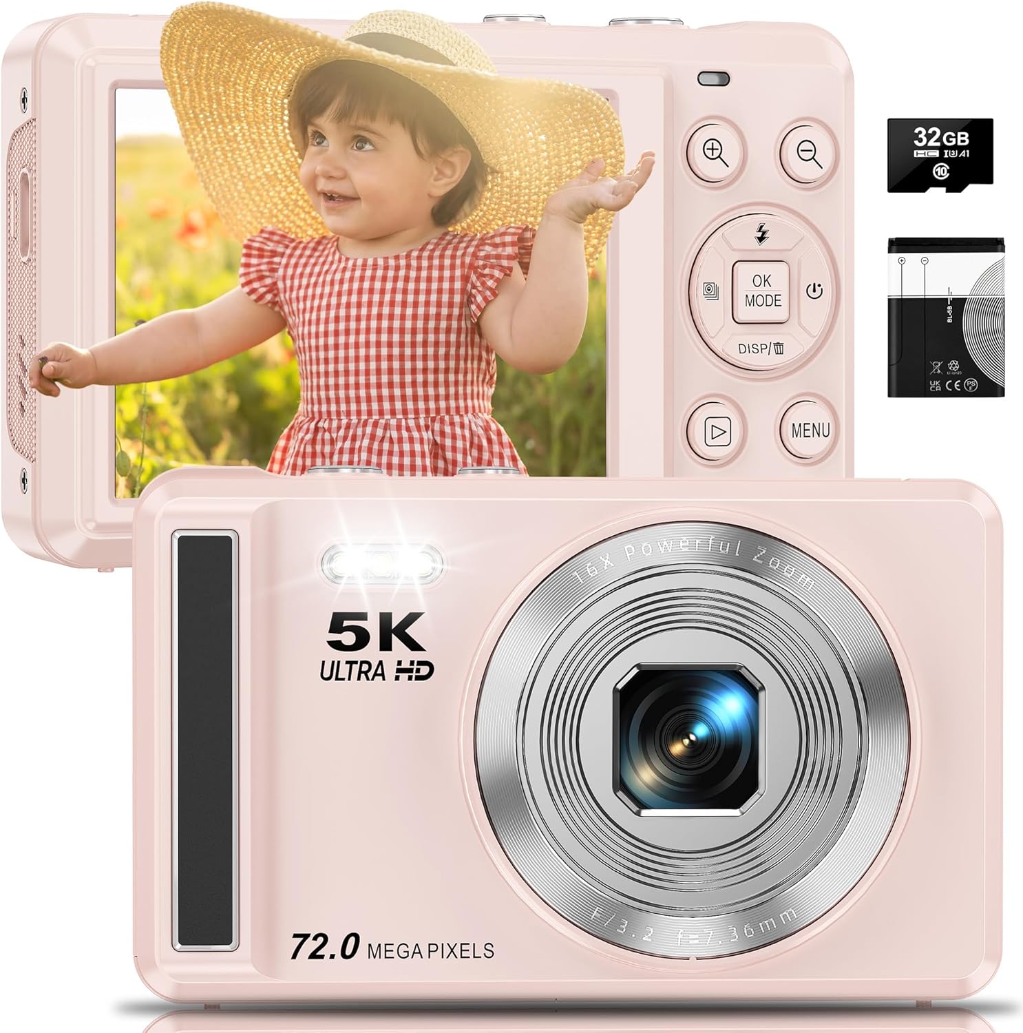 - đˇUHD 5K 72MP Digital Camera - Capture stunning 5K ultra HD video and 72MP professional photos with this digital camera. The upgraded CMOS sensor ensures every detail is sharp, turning each moment into a vivid memory. With ultra-high resolution and smooth image quality, this 5K camera lets you shoot effortlesslyâno complicated settings needed. Preserve your most unforgettable moments in stunning clarity