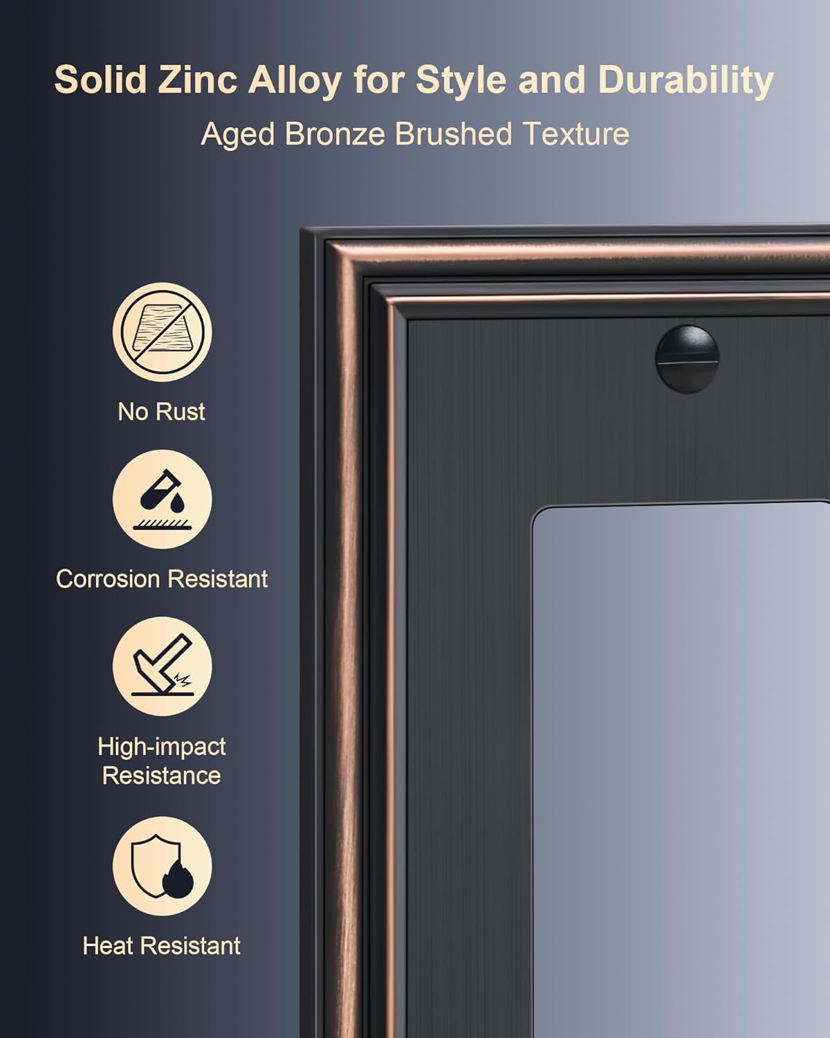 - Wide Application - Versatile and easy to match, These bronze wall plates are compatible with Decorator Outlet Receptacle, Roker Switch, Dimmer Switch, GFCI Outlets. Complements any interior style, whether your decor is modern, traditional, or contemporary, this decorative switch plate cover seamlessly blends in and glams up your wall.