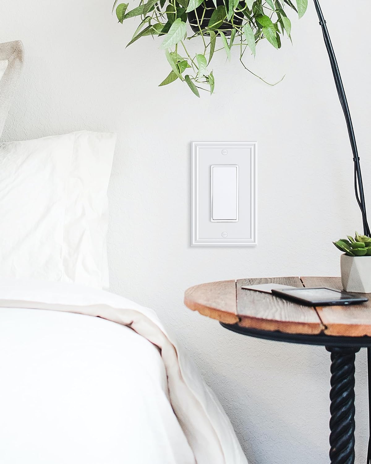 - Timeless Classy - Crafted with simple and clean brushed texture design, the pure white wall plate brings a fresh ambiance to your space. Its minimalist and contemporary design blends seamlessly into any decor scheme and offers a timeless yet elegant appearance that will elevate your interior design.