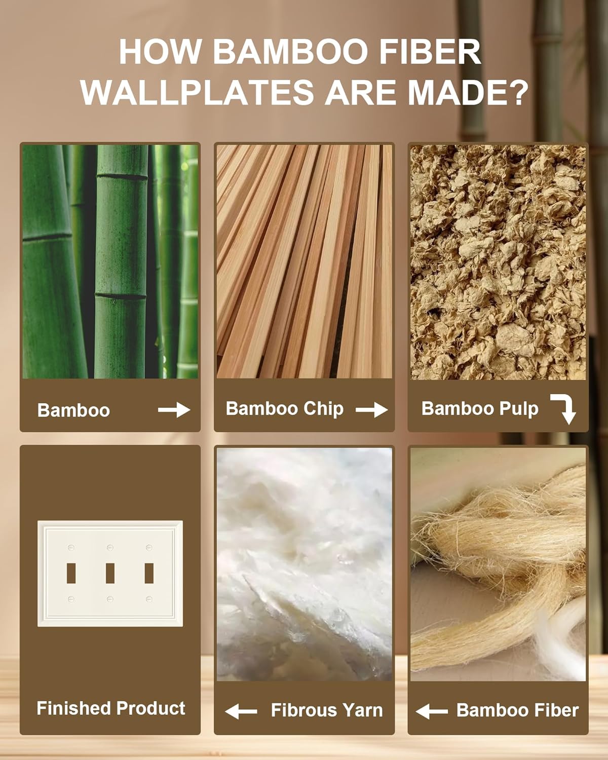 - Natural Bamboo Fiber Material - The wall plate covers are made from sustainable and environmentally friendly bamboo fiber, much thicker and more robust than plastic covers, easier to clean. Resistant to heat, moisture, and corrosion, ensuring it remain a stunning addition to your home for years to come.