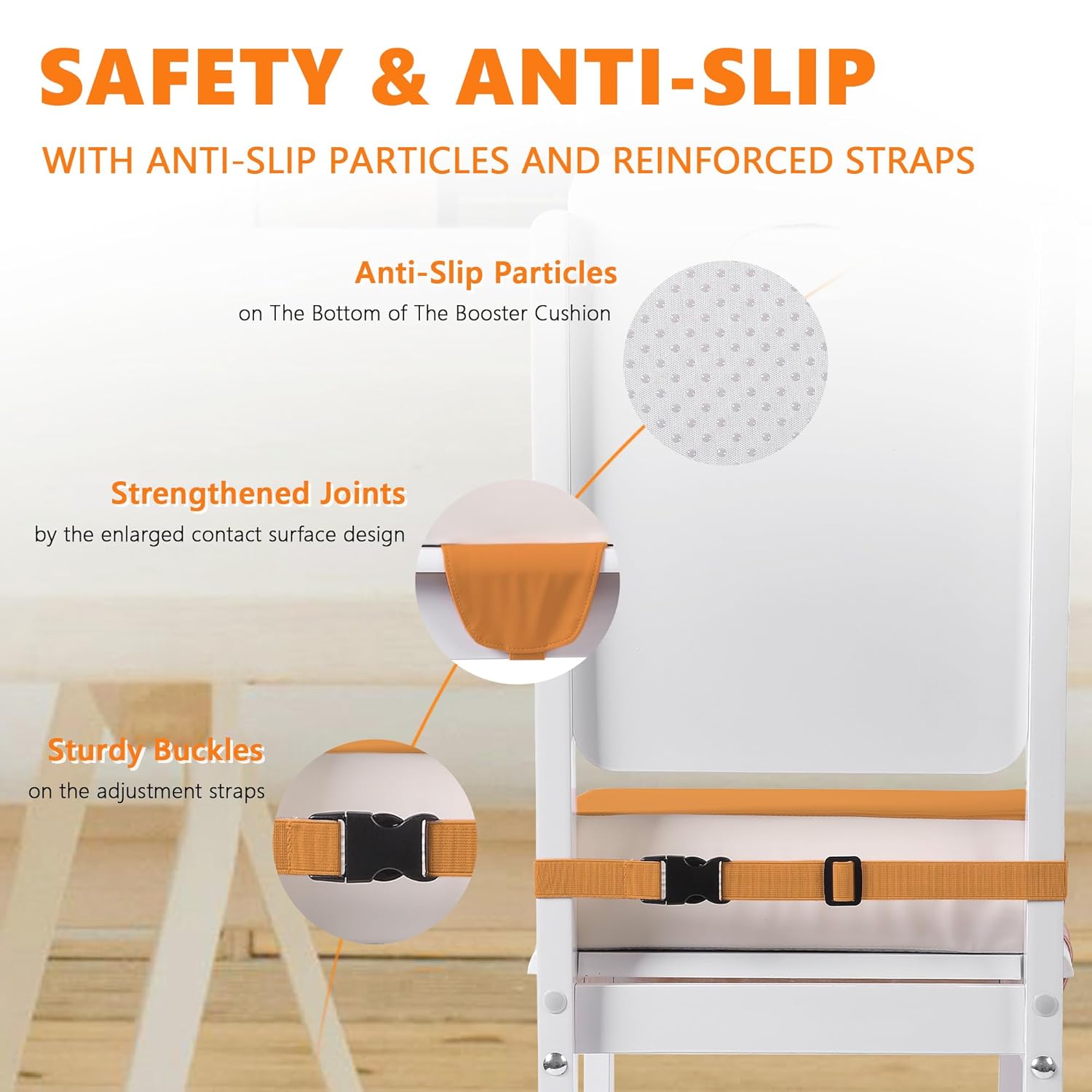 Booster Seat for Kitchen Chair with Adjustable Straps, Toddler Booster Seats for Dining Table Portable for Travel Camping Eating, Booster Cushion for Table for Baby Child Infant Kid Boy Girl