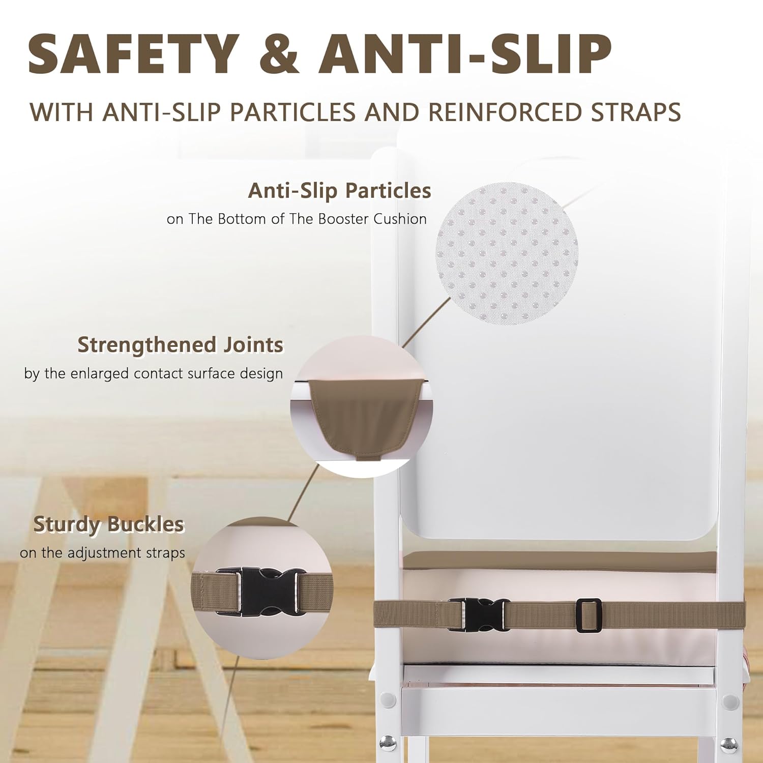 Booster Seat for Kitchen Chair with Adjustable Straps, Toddler Booster Seats for Dining Table Portable for Travel Camping Eating, Booster Cushion for Table for Baby Child Infant Kid Boy Girl