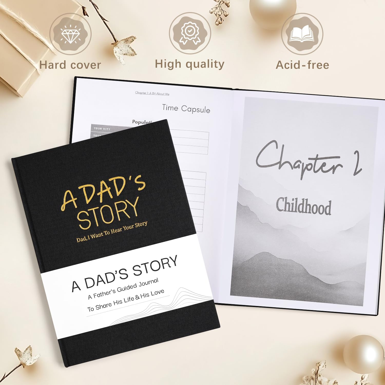 - Premium design to preserve precious memories: crafted with a luxurious linen cover and elegant gold front, this dad journal is not only visually stunning but also built to last, ensuring it becomes a timeless family heirloom.