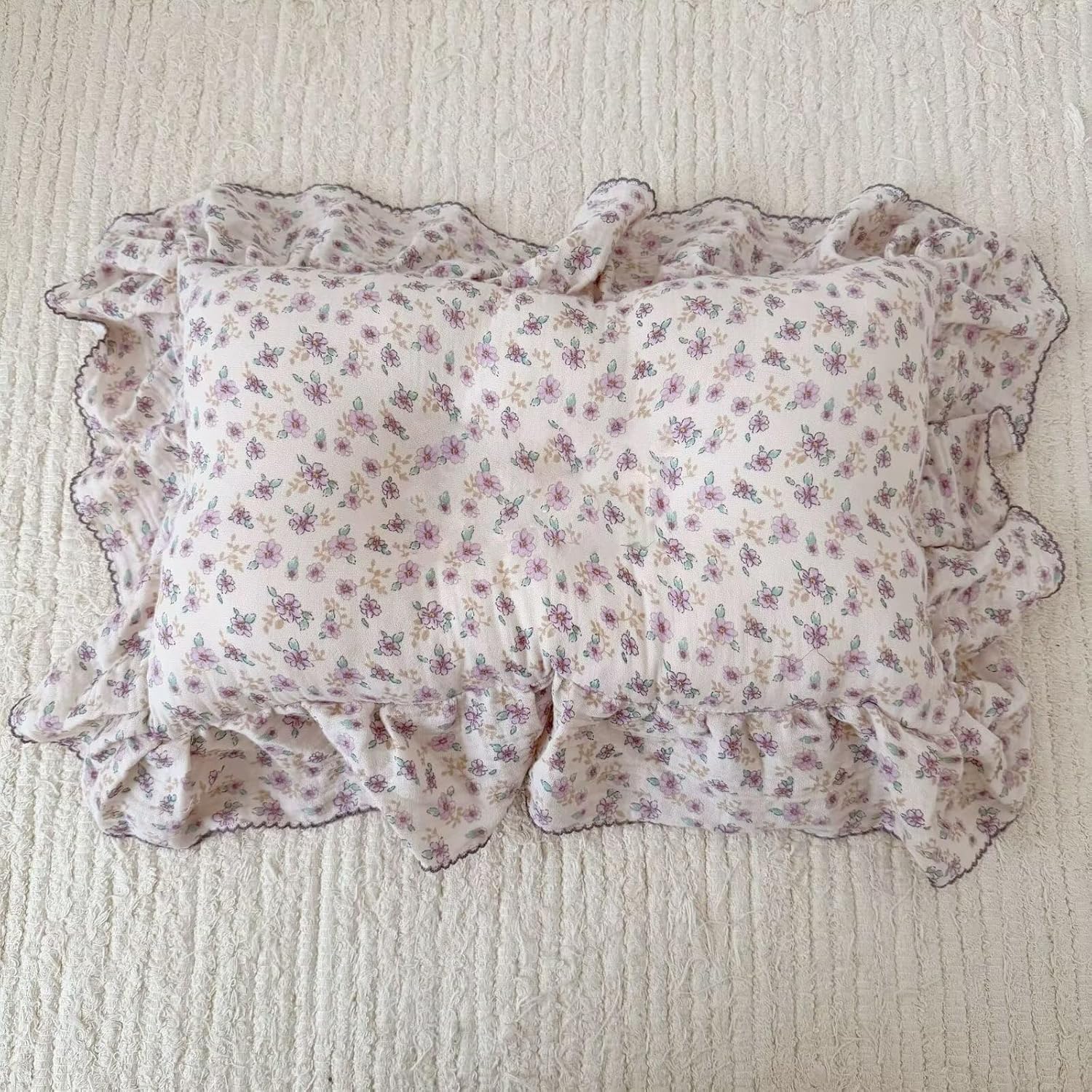 - 【Cute Pattern】 Cotton muslin toddler kids pillow covers designed with purple flower patterns and ruffles on the edges. The chic shabby style is suitable for both girls and boys.【Please understand this is just pillow cover, the pillow insert/filling NOT included.】