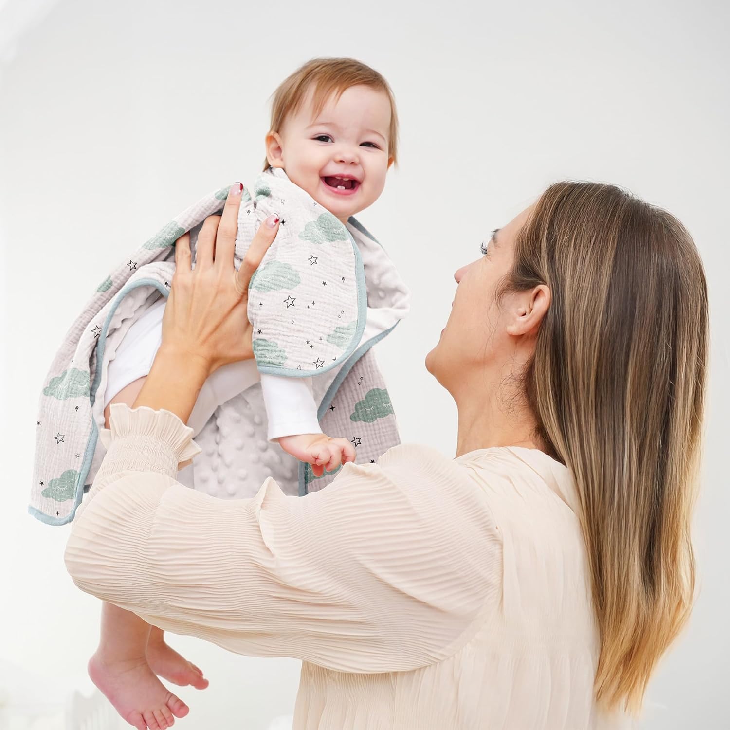 - Premium Material: Our baby blankets for unisex boys and girls are made from 100% muslin cotton on the front and ultra-soft dot fleece fabric on the back. This combination ensures warmth and comfort, making it gentle on your baby's sensitive skin. Perfect for all seasons, this muslin baby blanket creates a cozy environment for your little one to sleep soundly.