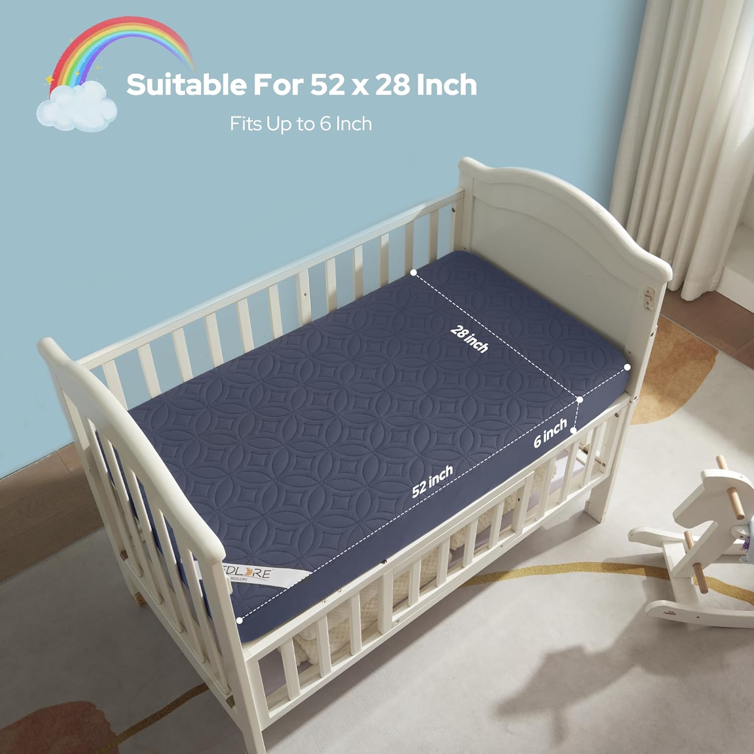 Waterproof Crib Mattress Protector 2 Pack, Soft and Breathable Crib Mattress Pad Cover, Noiseless Machine Washable Toddler Mattress Protector for Standard Baby Toddler Bed (52''x28'',Navy Blue)