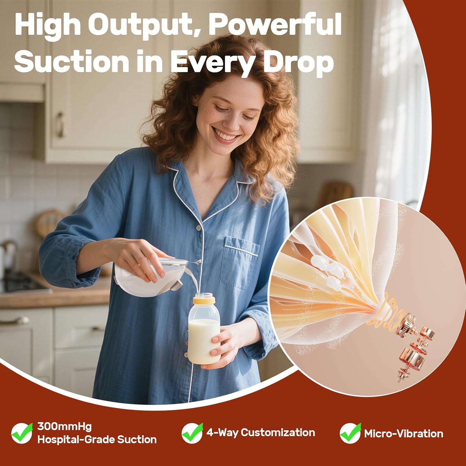 - Rechargeable and Travel-Friendly: Built-in 4400mAh battery supports multiple sessions per charge. LED touch screen with night light lets you pump anytime. With fewer detachable parts and dual-collection options, it's easy to clean and travel-ready—ideal for busy moms pumping at work, home, or on the go
