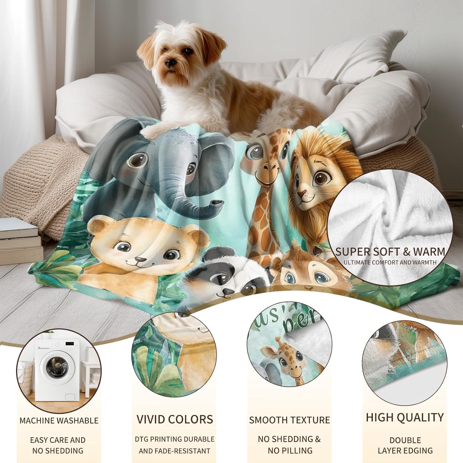 Ship Next Day, Personalized Baby Blanket - Printed in USA, Custom Baby Blanket with Name, Customized Animal Blankets for Boys & Girls, Soft Cozy Receiving Blankets for Toddlers, Stroller Decor Throw