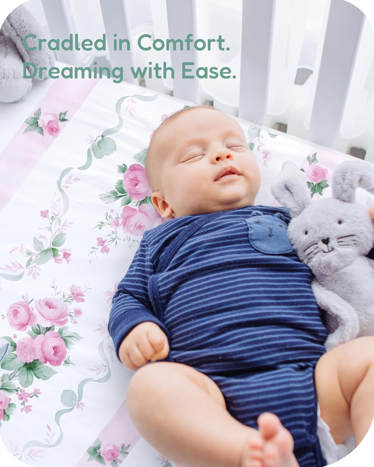 Pack and Play Sheets Fitted, Pink Roses Pattern, Breathable and Safe, Hypoallergenic, 2 Pack for Baby Girls