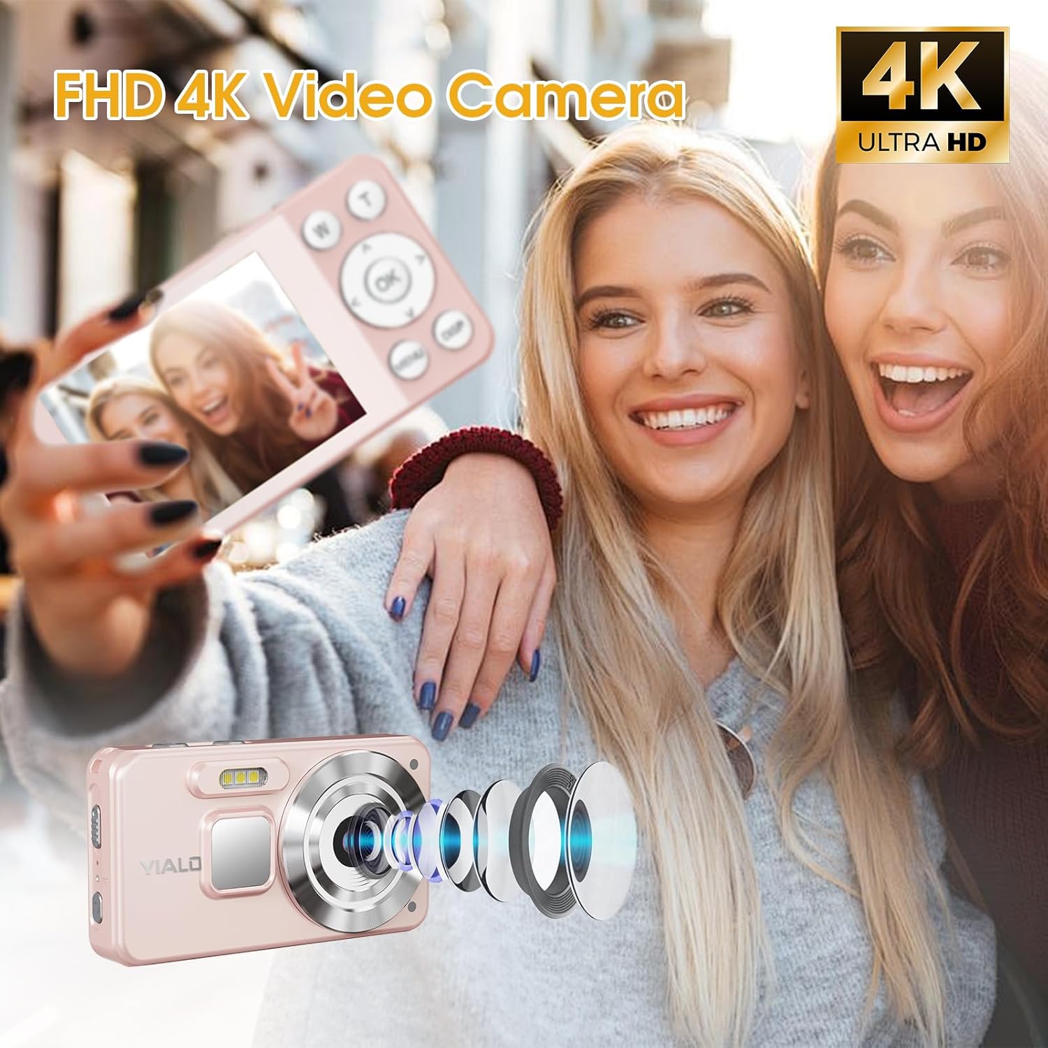 - 【64MP & 4K Digital Camera】YIALO Digital Camera is equipped the latest CMOS image sensor system, support premium 64MP photos and 4K HD video recording. It has a built-in fill light to help you take high quality pictures even in low light&dark settings. This 4k camera automatically delivers natural, vibrant colors and clear, vivid details without the need for complex manual settings, helps us record the wonderful times.