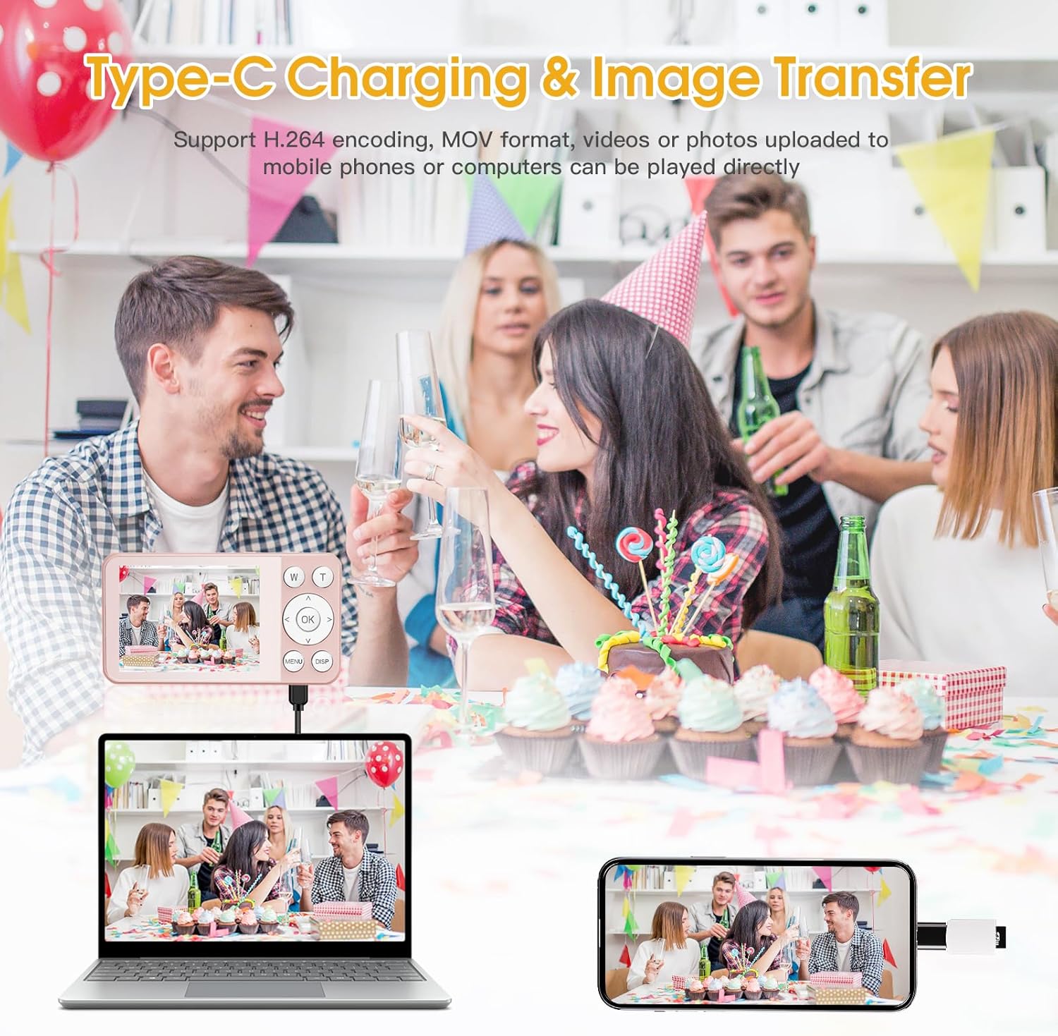 - 【2.8inch Screen & 11 Filter Effects】2.8inch HD screen small digital camera offers 11 filter effects, such as black and white,sunset, warm, cool and so on, it is waiting for you to explore them. In addition, this digital camera for teens is also equipped with many features such as anti-shake, face recognition, smile detection, continuous shooting, self-timer, time stamp ON/OFF. Perfect for sparking boys and girls' creativity and fostering an interest in photography.