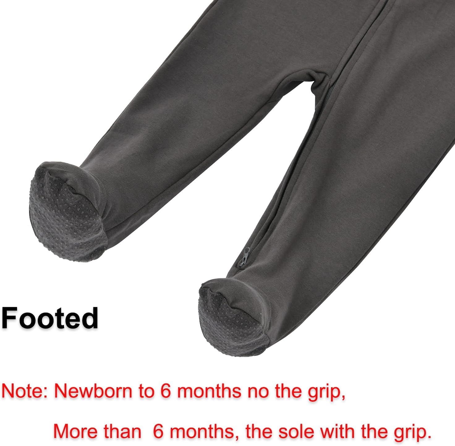 • Non-Slip Grips: These baby footed pjs size 6-12m and 12-18m have non-slip grips on the soles, providing safety for crawling or early walkers.(Note: Size Newborn to 6 months without the grips)