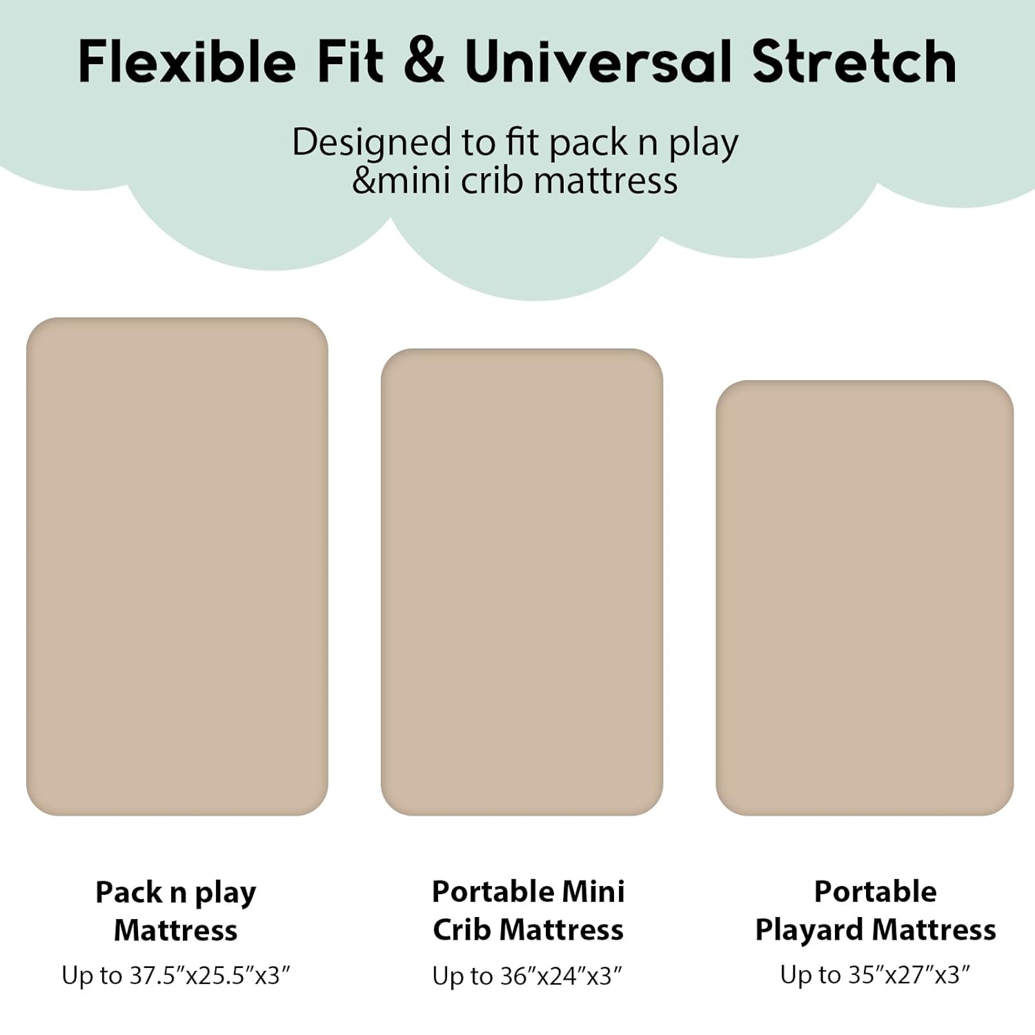 - COZY AND BREATHABLE: Made from 95% microfiber & 5% spandex, our pack and play sheets are gentle and safe to touch, does not irritate baby's delicate skin. The breathable fabric also allows air to pass through easily and brings your baby a peaceful dream.