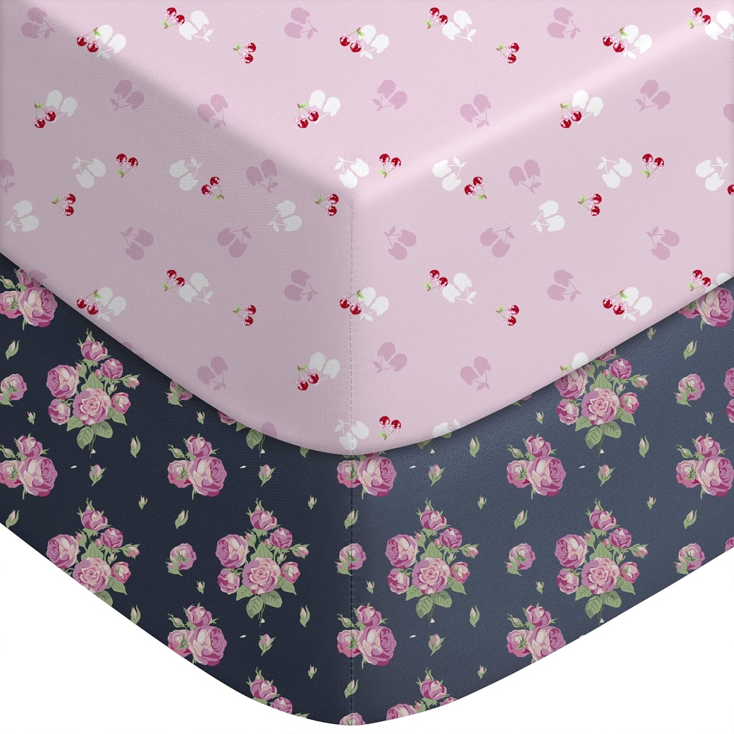 Yoofoss Baby Crib Sheets for Boys Girls, Fitted Crib Sheet 2 Pack for Standard Crib and Toddler Mattress, Super Soft Microfiber Baby Sheet 28x52x8in(Pink+Cherry)