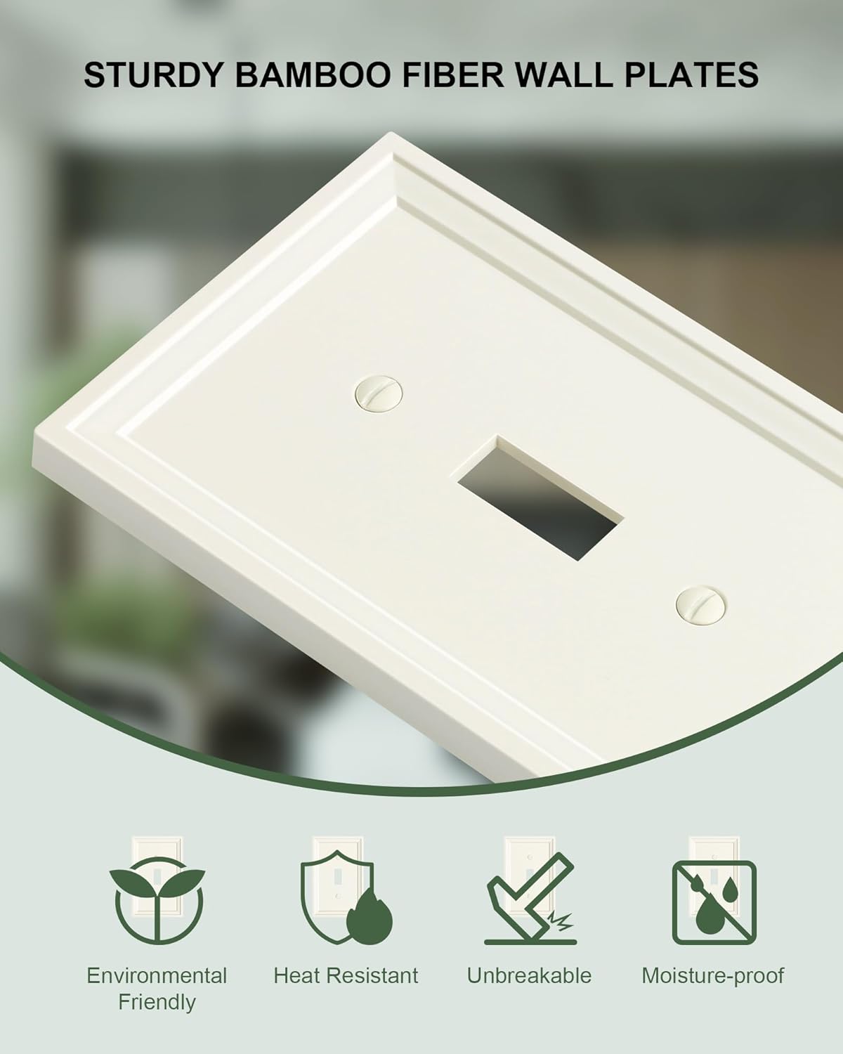 6-Pack Single Toggle Light Switch Covers Wall Plate, Light Almond Decorative Switch Plate Covers, 1 Gang Natural Bamboo Fiber Wall Plate, Corrosion Resistant