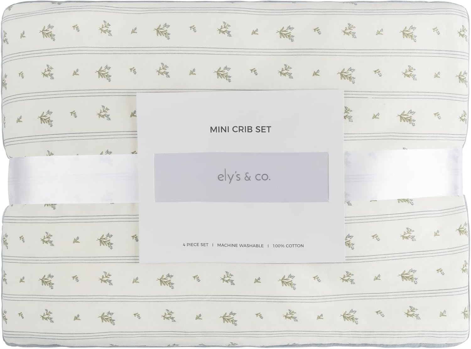 - Beautifully ribbon-wrapped and gift-ready, this mini crib comforter set is perfect for baby showers and a must-have on any baby gift registry—combining style, quality, and convenience.