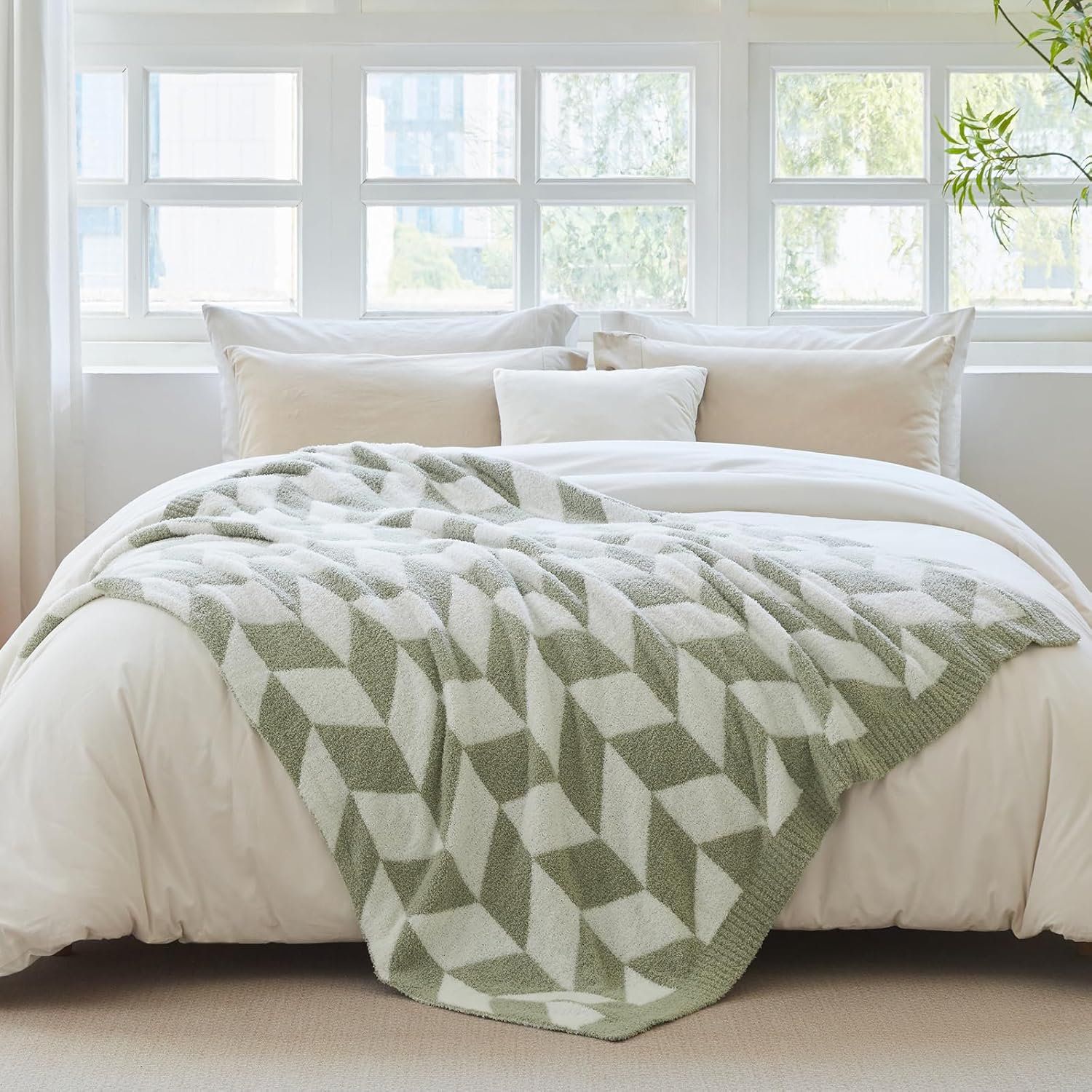 Snuggle Sac Chevron Throw Blanket for Couch, Reversible Super Soft Warm Blankets Cozy Knit Fuzzy Plush Lightweight Throws for Sofa, Bed, Camping, Green,50x60 inches