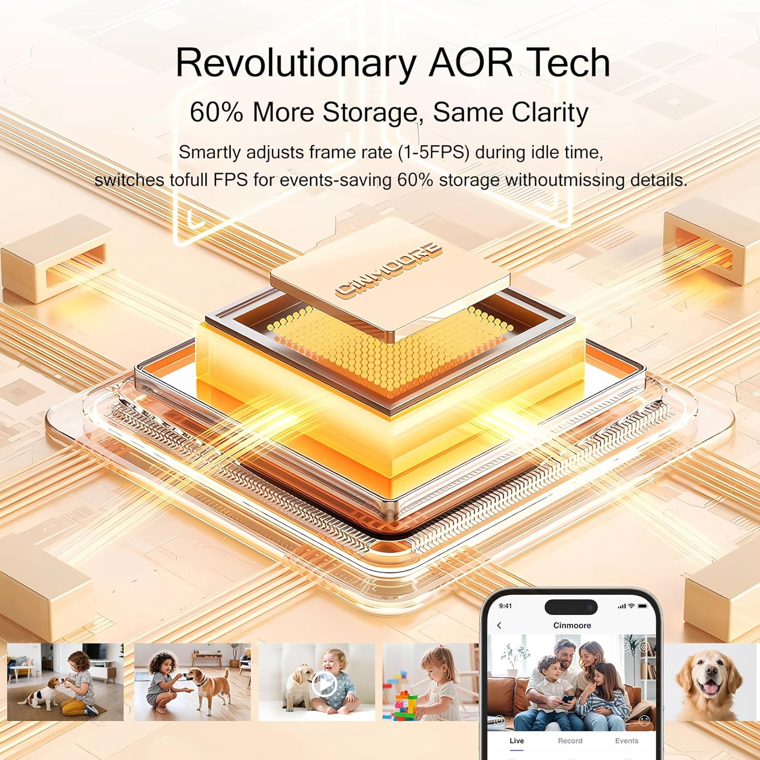 - Indoor Camera's SD & Cloud Storage: Avoid subscription traps -24/7 recording to SD card (expandable to 512GB, not included). Optional AWS Cloud with bank-level security locks. With our LoFR (Local Face Recognition) and AOR tech, you can easily tag clips of your family's faces and record 3x longer than average