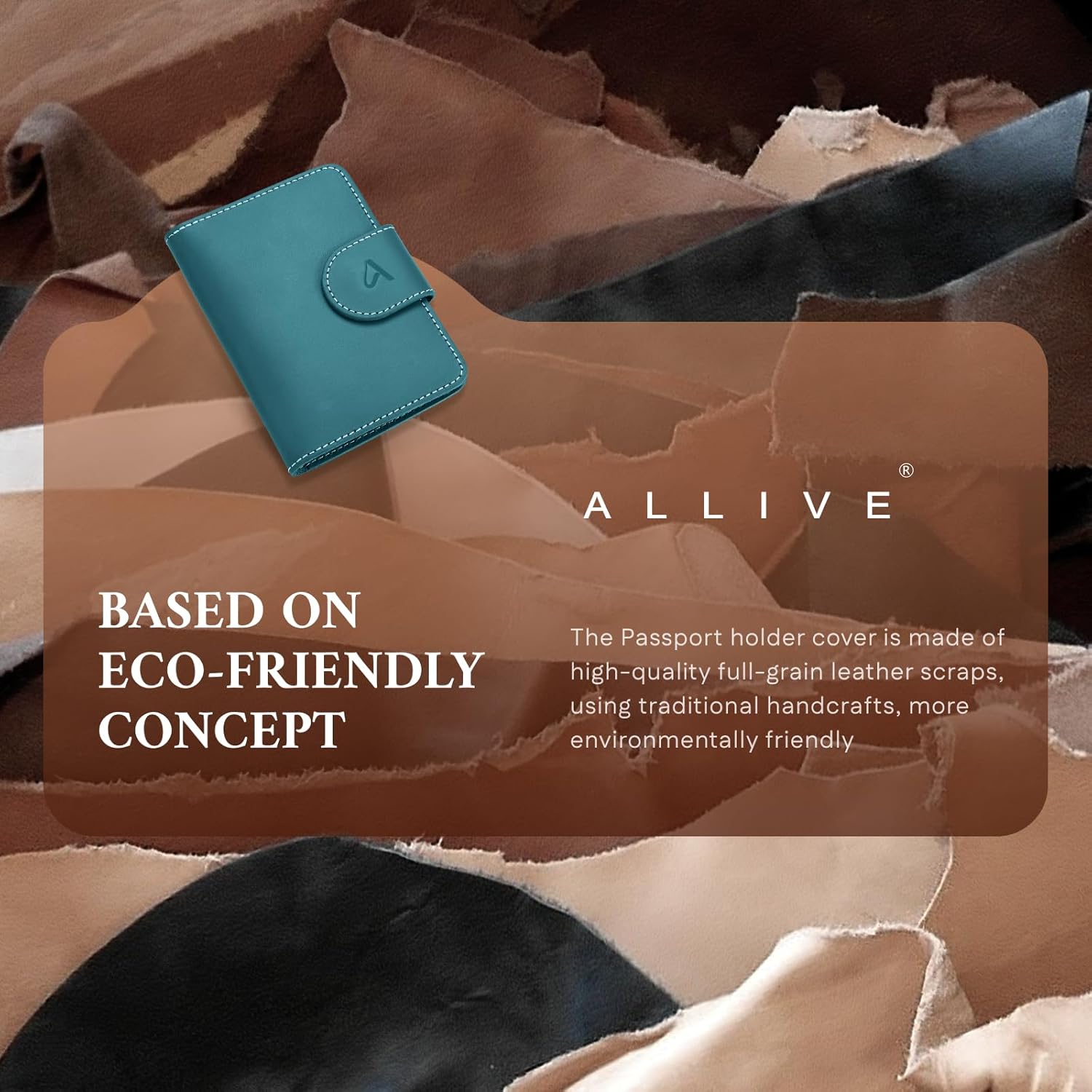 ALLIVE Rfid Passport Holder for Travel, Women & Men, Passport Cover Wallet with AirTag Hidden, Genuine Leather Passport Holder Essential for Business Travel, Airport Security (Lake Blue)