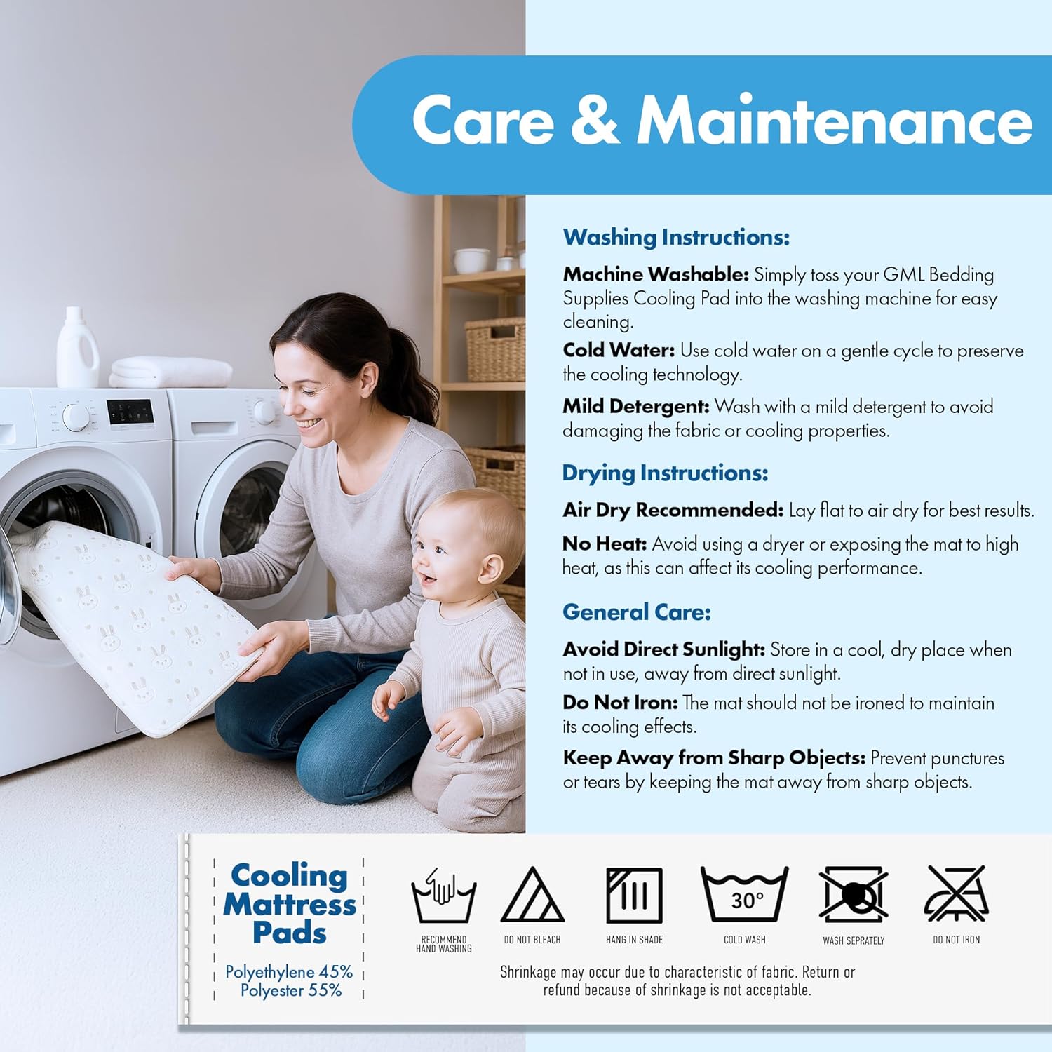 GML Bunny Cooling Crib Mattress Pad – Waterproof, Breathable Baby Mattress Protector for Toddler Bed – Hypoallergenic, Soft & Durable for Sensitive Skin – Made in Korea, Q-Max 0.4 Medium Size, 39.4X59