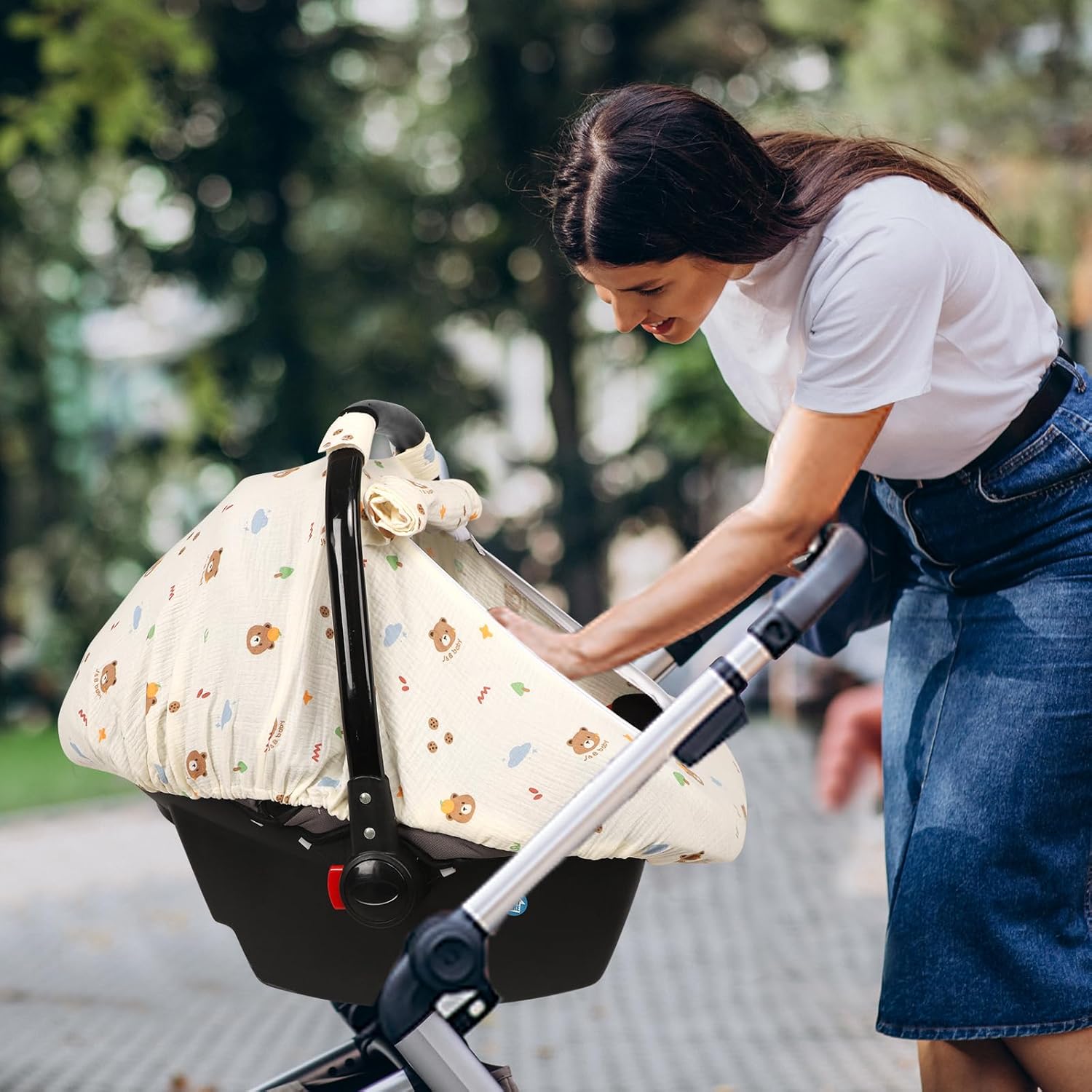 Hooyax Muslin Car Seat Cover Baby - Breathable and Privacy Car Seat Canopy with 3 Modes - Easy Install & Gift Box Packaging, Universal Fit for Infant Car Seats, Bear