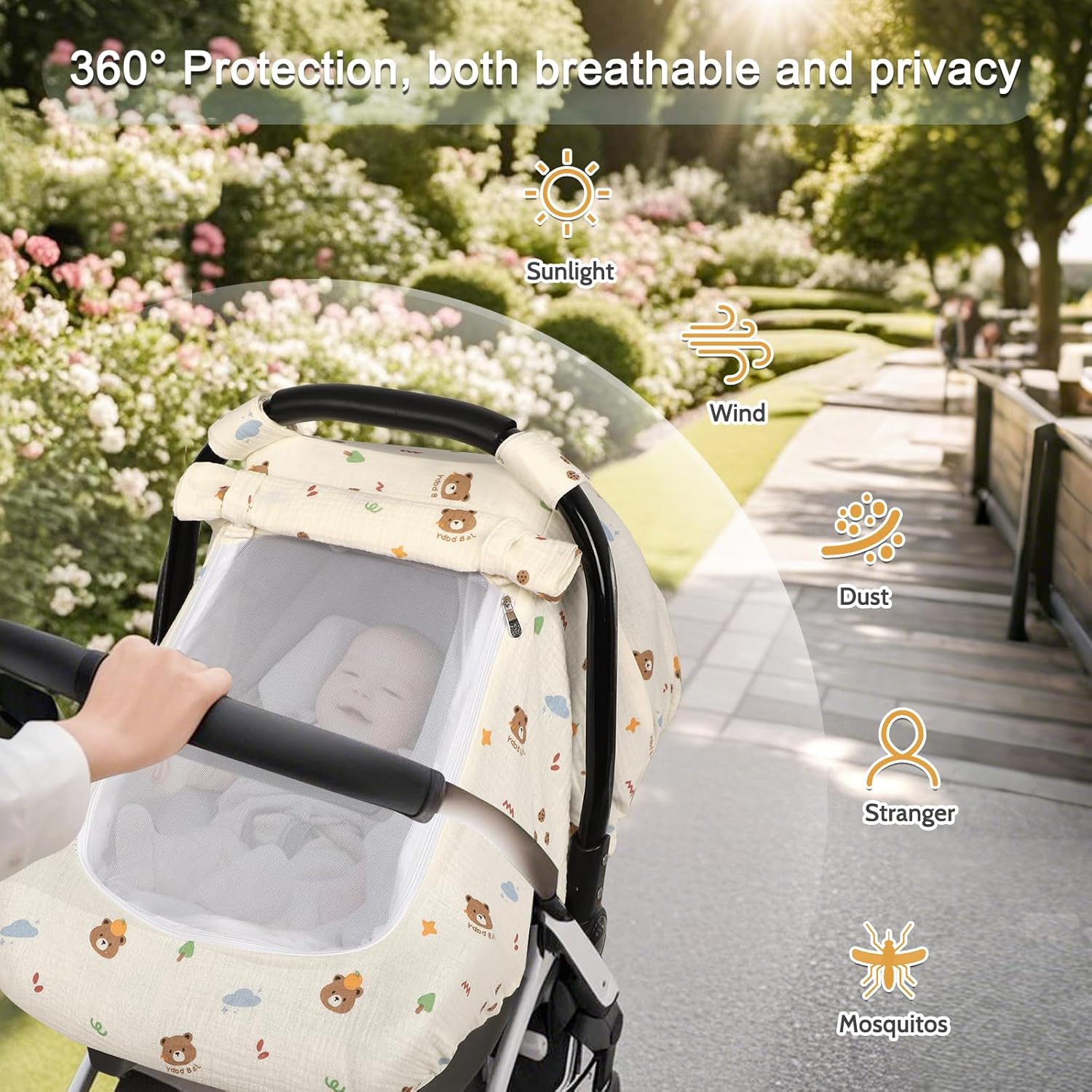 - 360°Full Coverage & Privacy Protection: Designed with 360°full coverage, this car seat canopy provides optimal shade and privacy, and protects your baby from mosquitoes, ideal for baby essentials while on the go