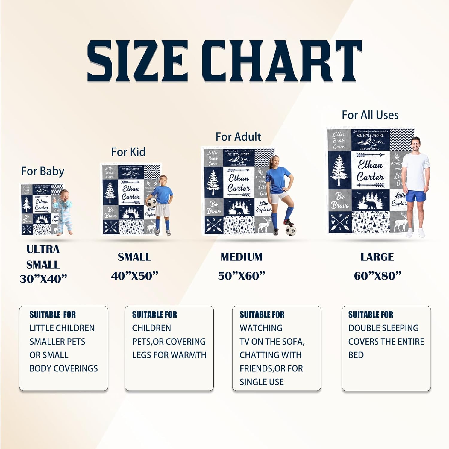 - Multiple Sizes & Colors Baby Blanket -- custom name blanket are available in 5 colors and 4 sizes: 30"x40" , 40"x50" , 50"x60" (single beds), 60"x80" (family movie nights).Select your loved one’s favorite shade to create a treasured keepsake that infuses their world with color. Thoughtfully crafted for both gifting and everyday cuddles, these blankets grow with your child while keeping memories vivid wash after wash.