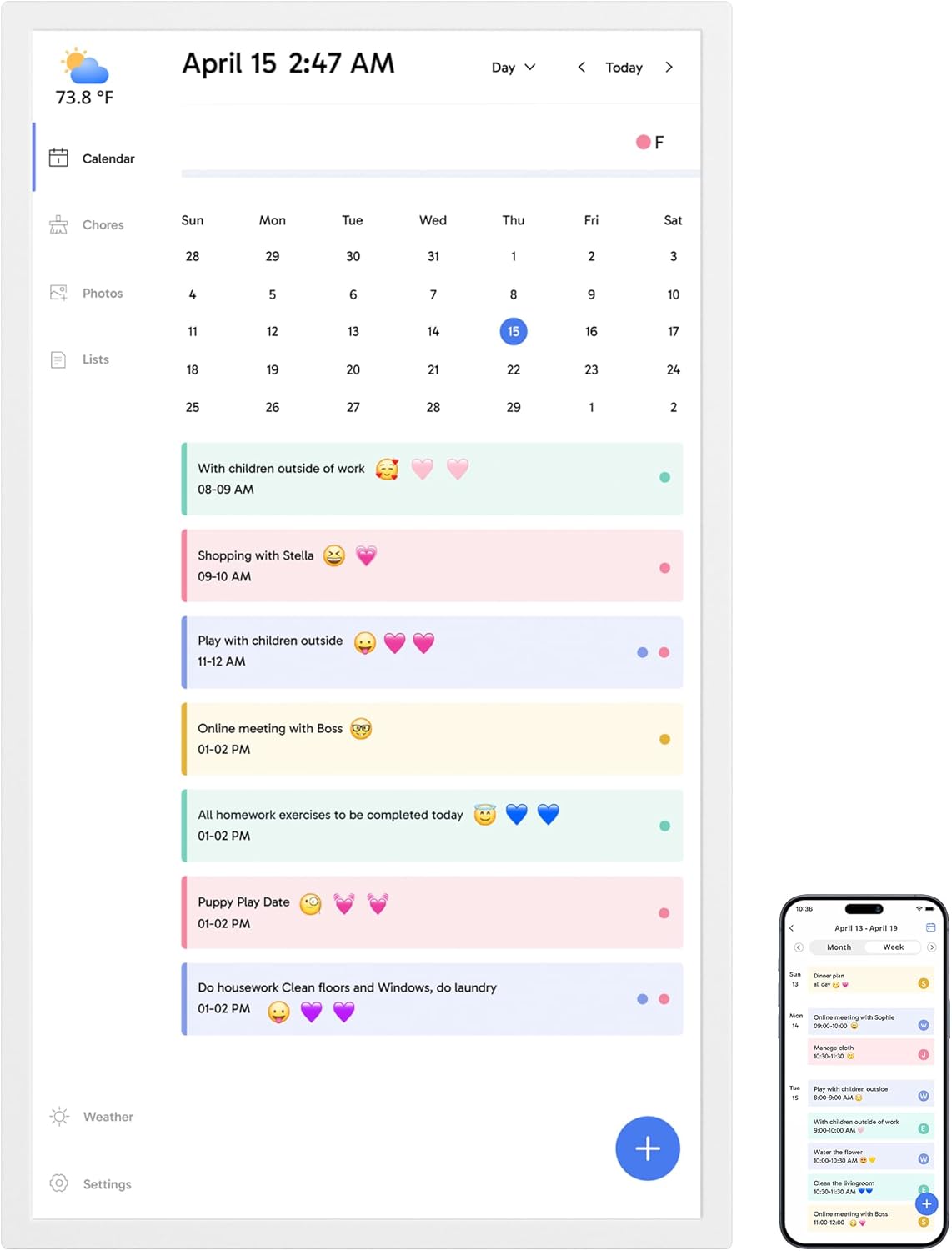 - 【Interactive Chores Chart & Dinner Planner】: Our digital calendar keeps housework organized and motivates family members, especially children, to develop healthy habits with an interactive chore chart. Display your family dinner plans to keep everyone informed and eliminate the daily "What's for dinner?" question.