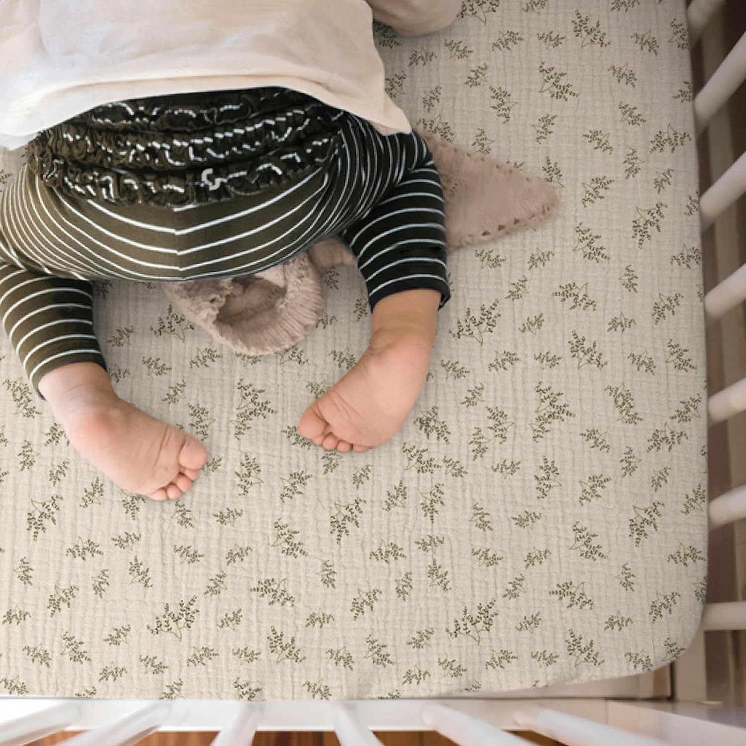 lulumoon Mini Crib Sheets Muslin: Soft Cotton Fitted Mini Crib Mattress Sheets for Boys and Girls 2Pack