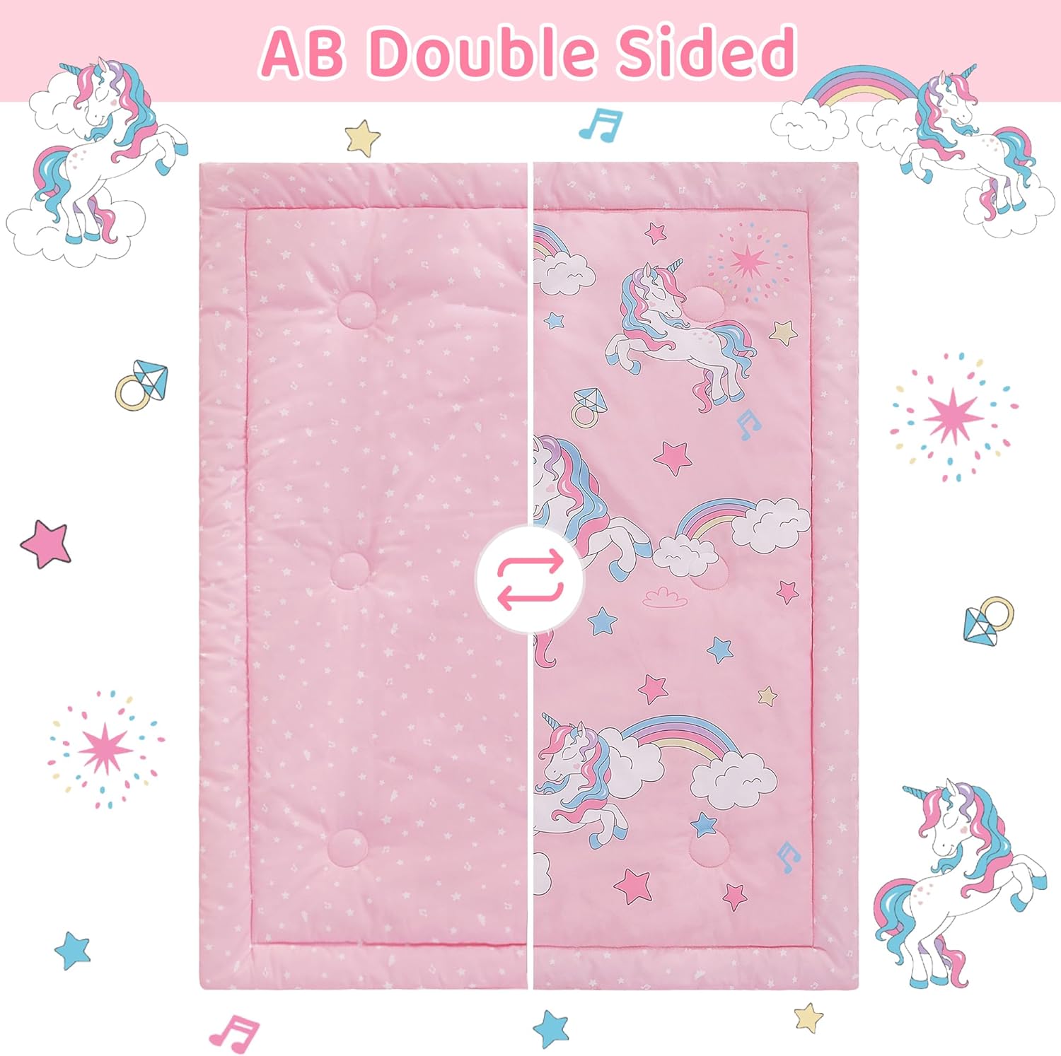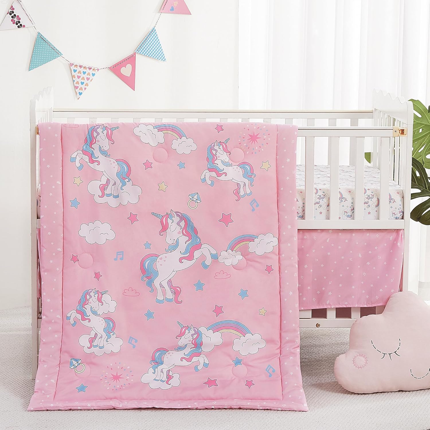 Viviland 3 Pieces Baby Bedding Set for Boy Girls, Baby Bedding Set for Newborn, Infant & Toddler - Unicorn